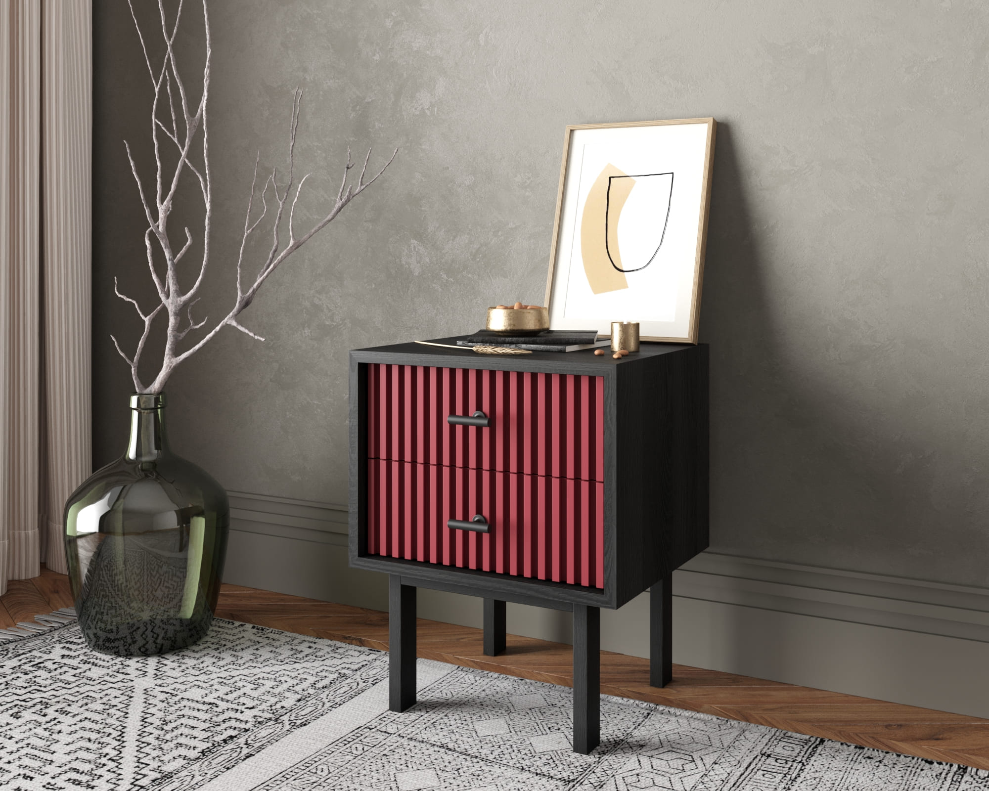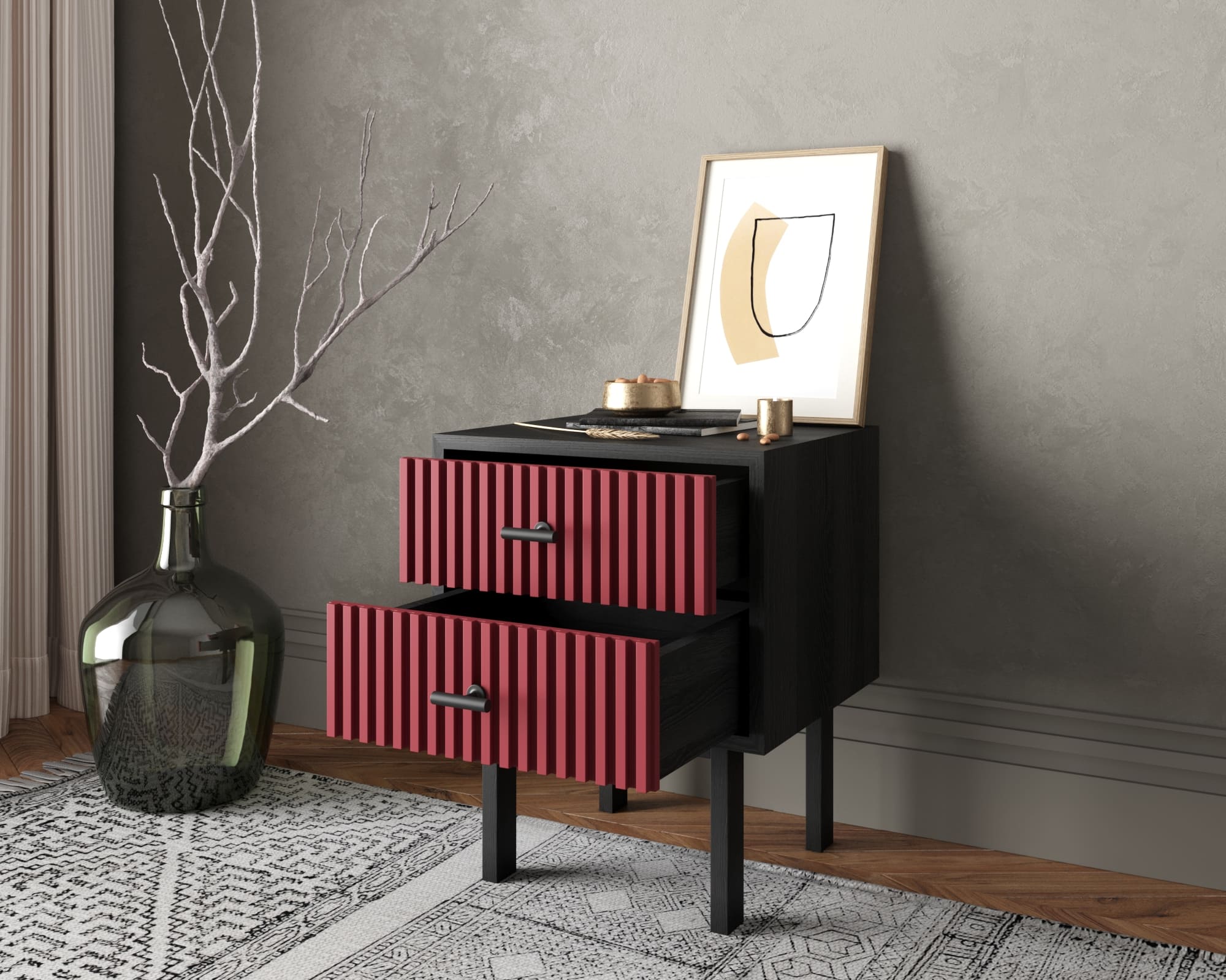 Тумбочка с двумя ящиками "Emerson" арт EM16/red/L