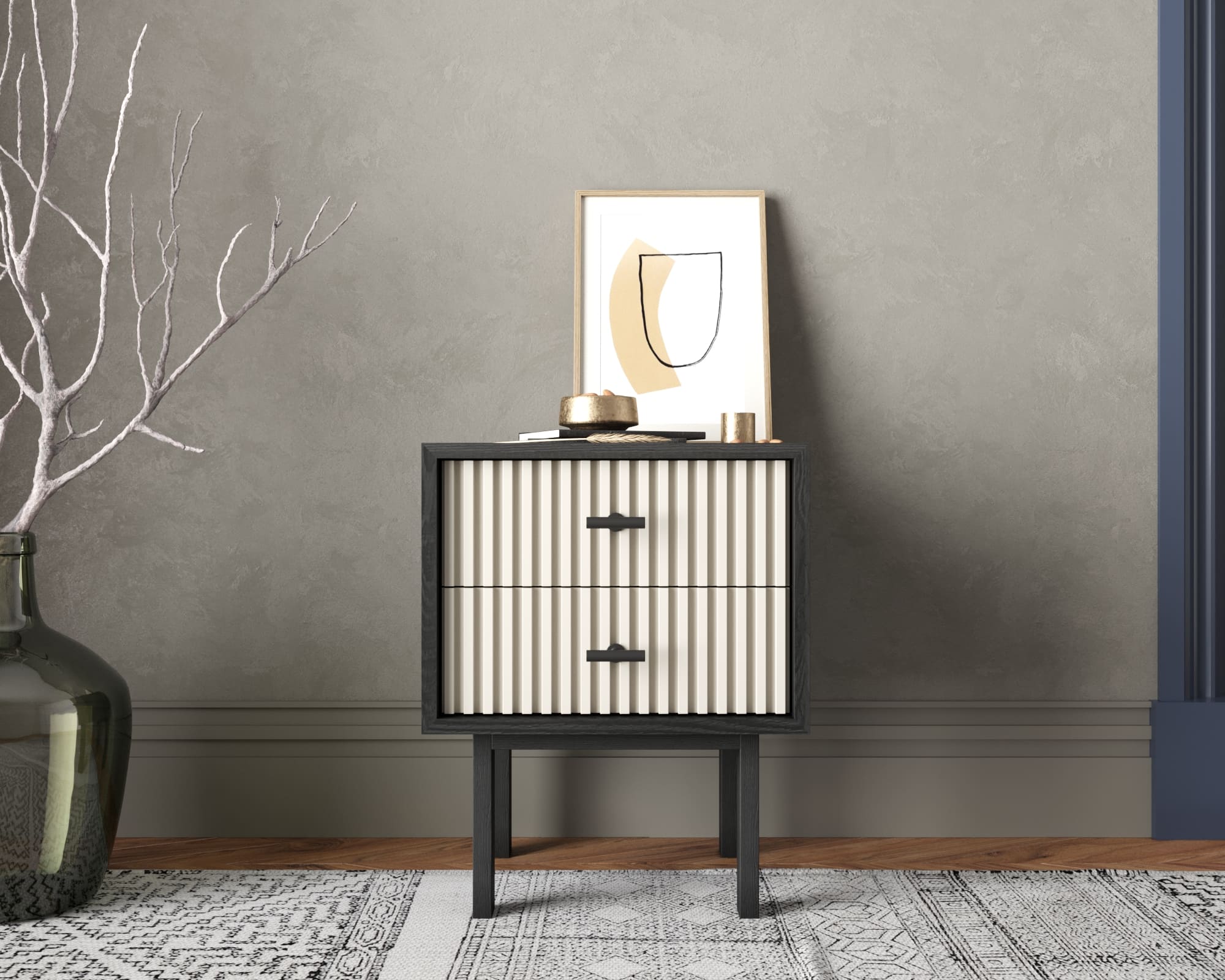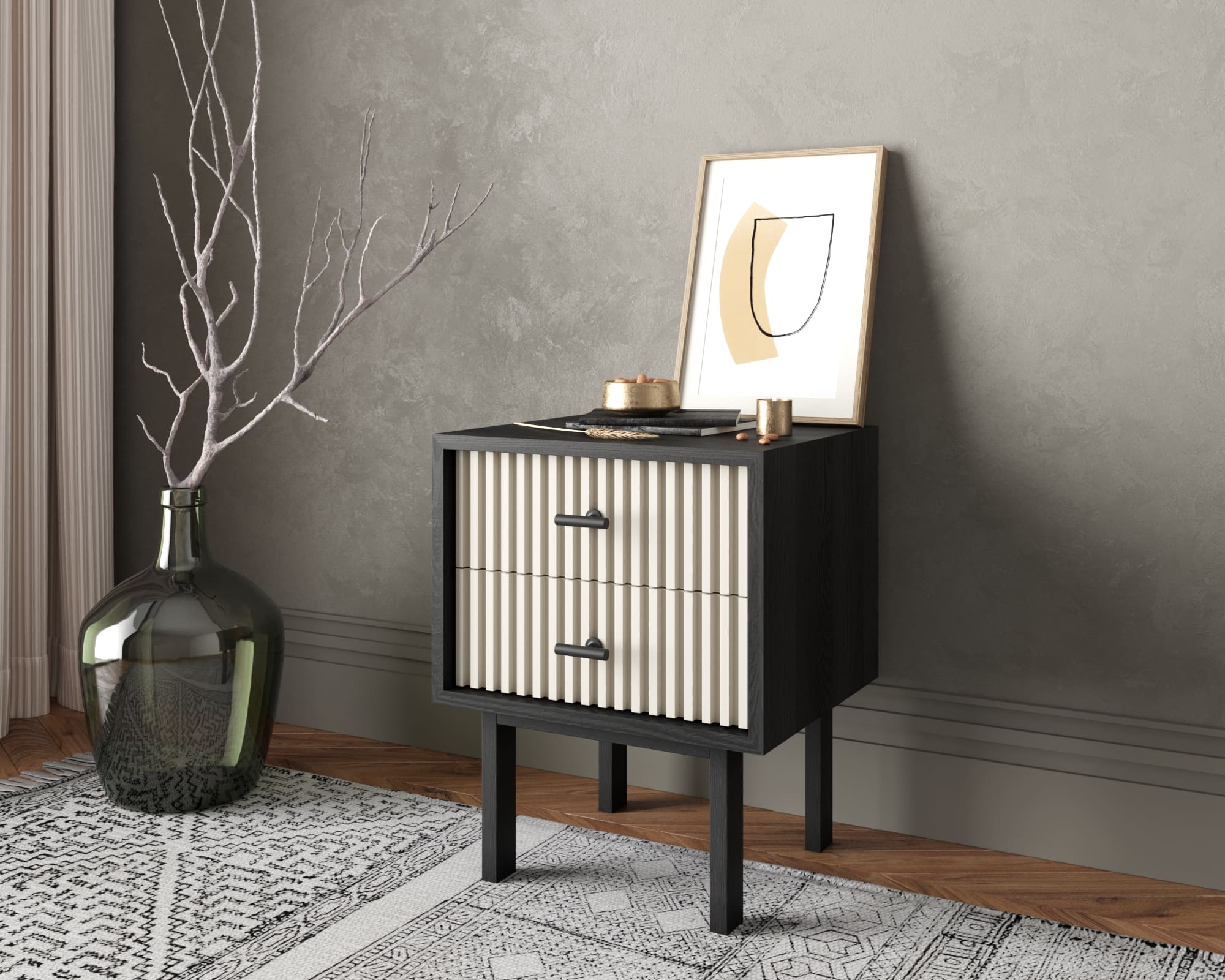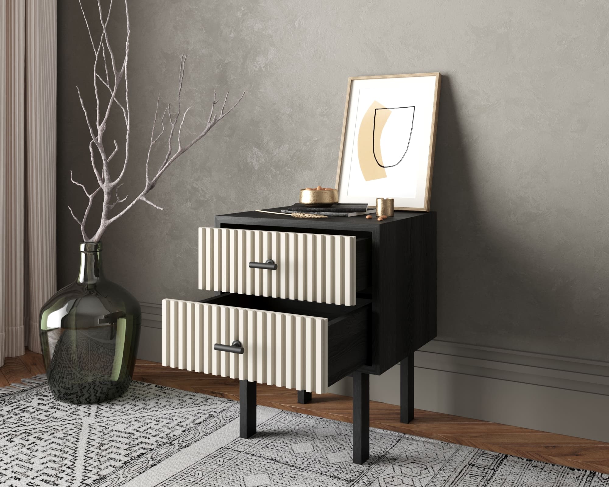Тумбочка с двумя ящиками "Emerson" арт EM16/milky/L