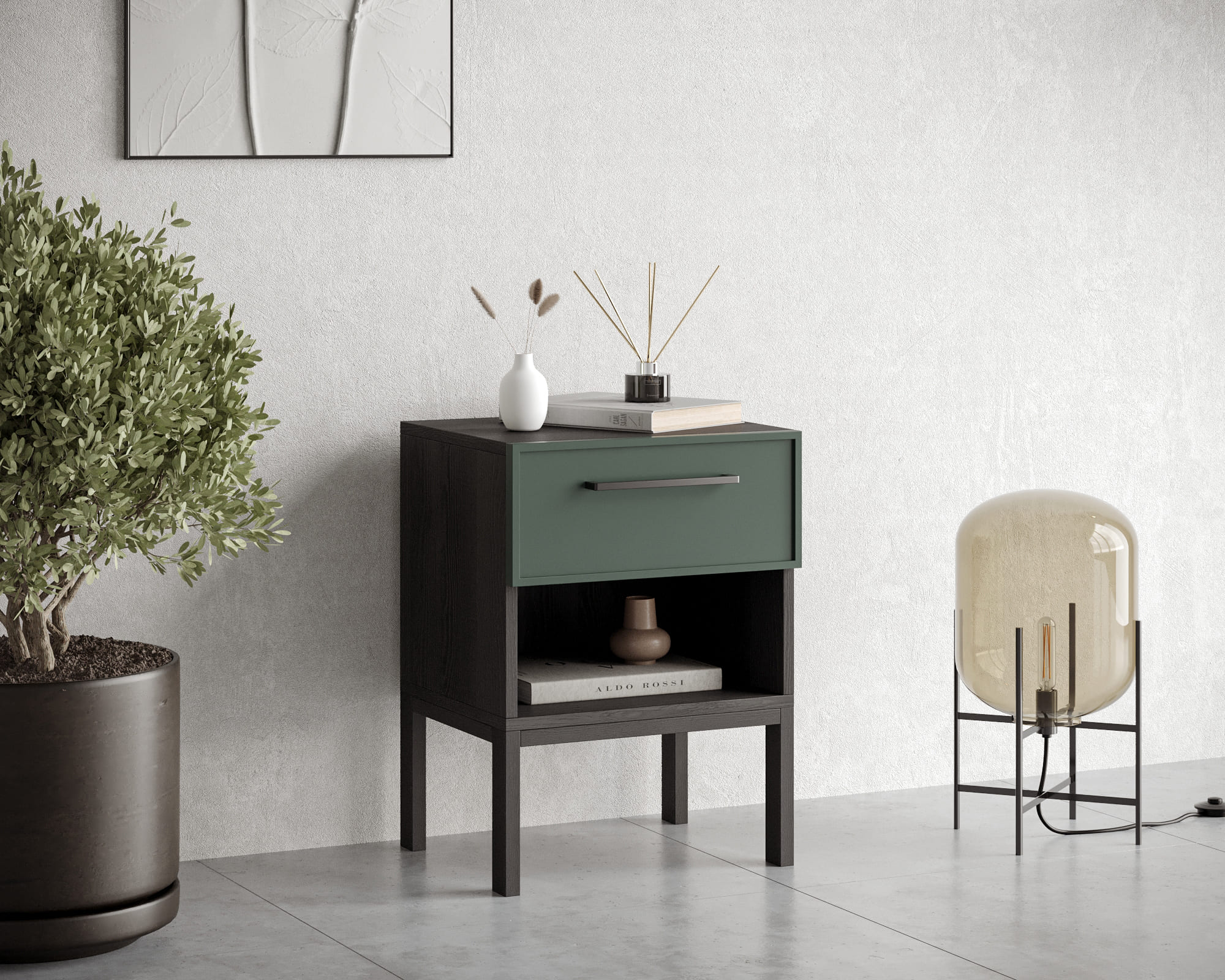Тумбочка с верхним ящиком "Nicole" арт NEM11G Зеленый