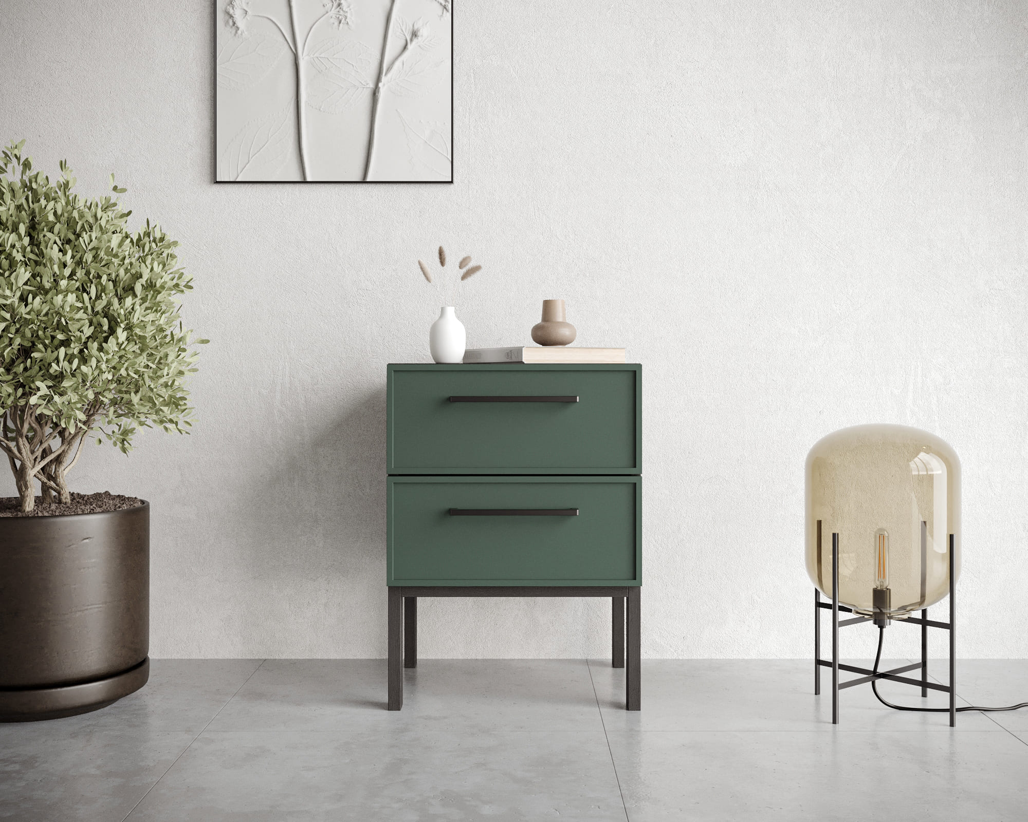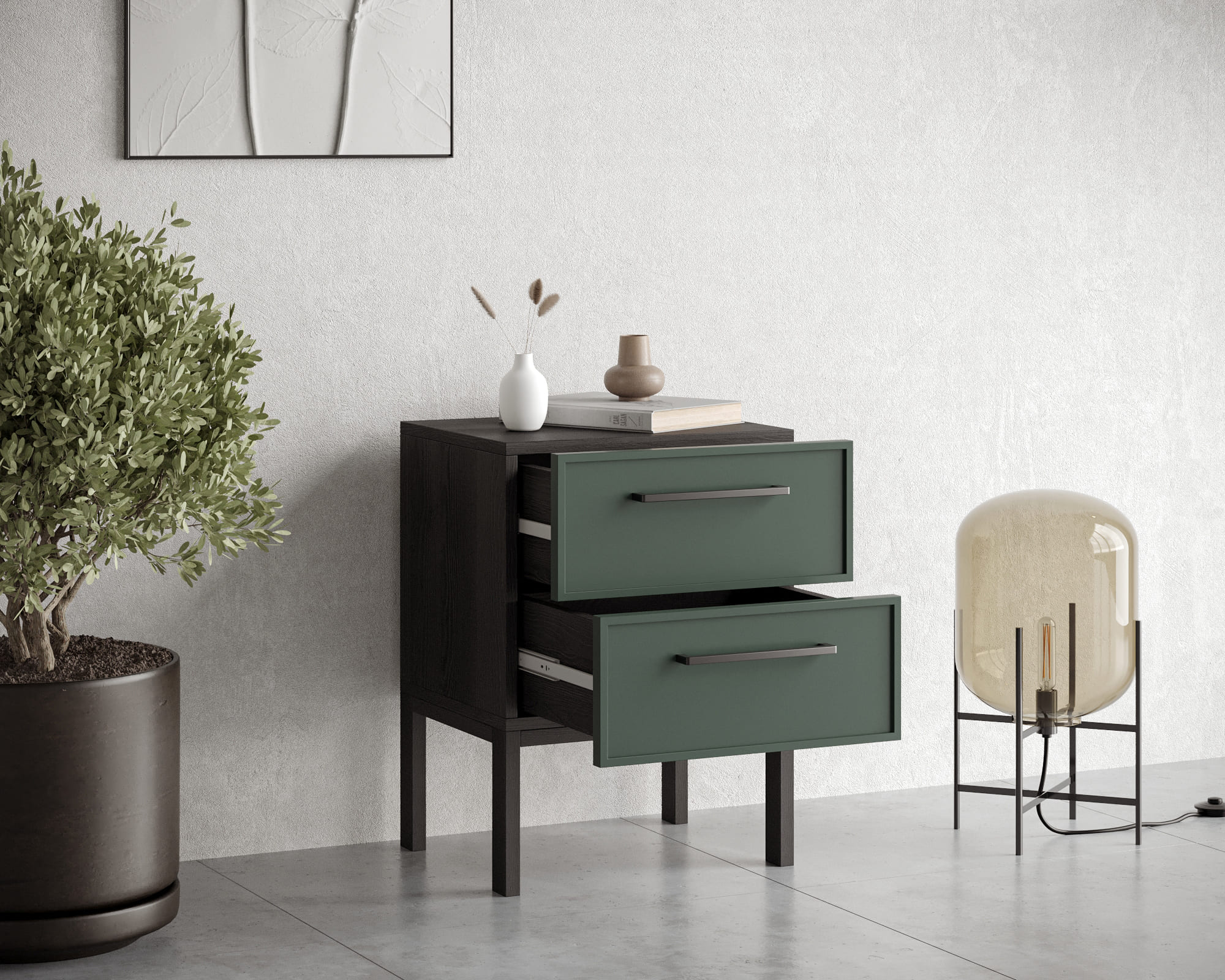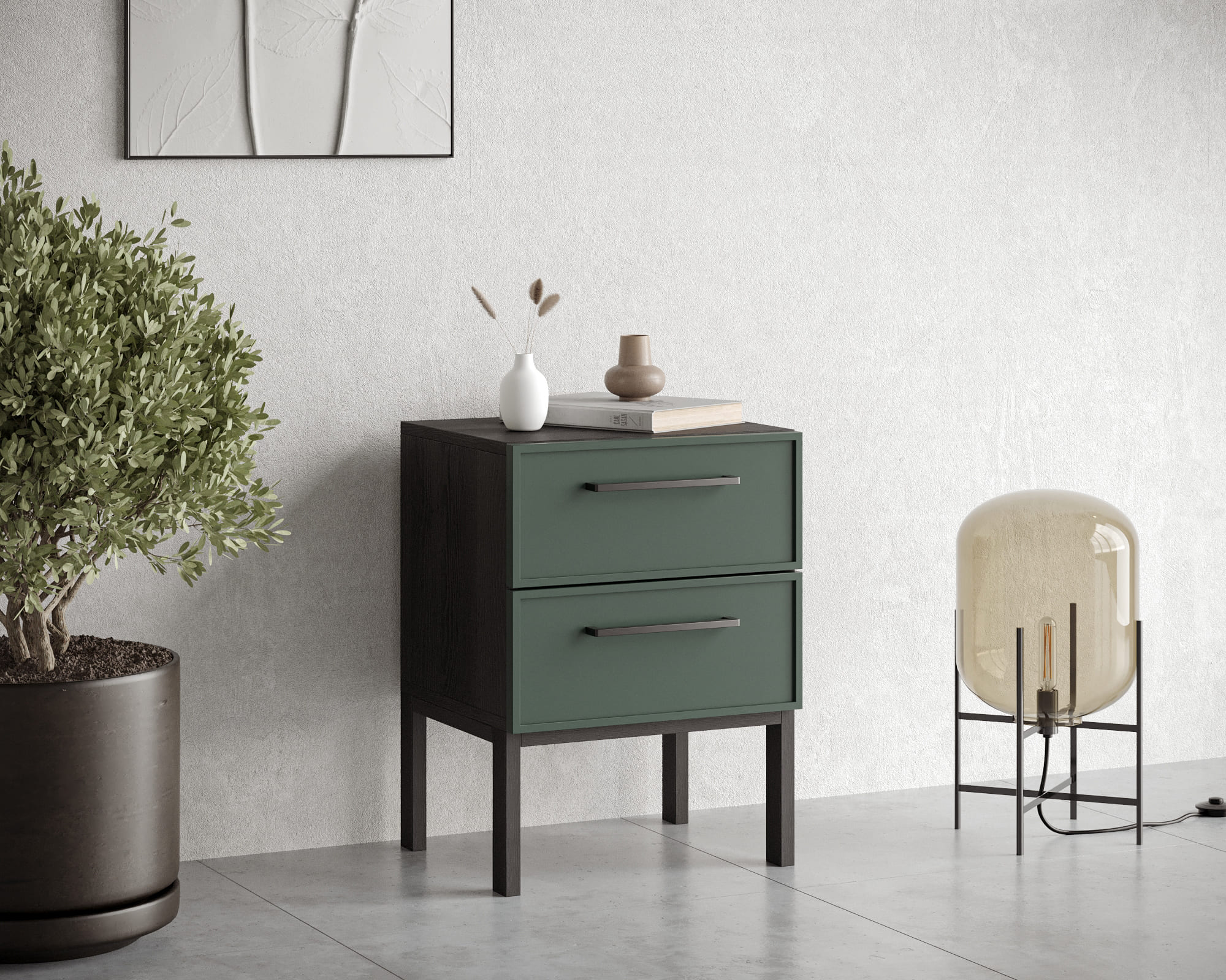 Тумбочка с двумя ящиками "Nicole" арт NEM16G Зеленый