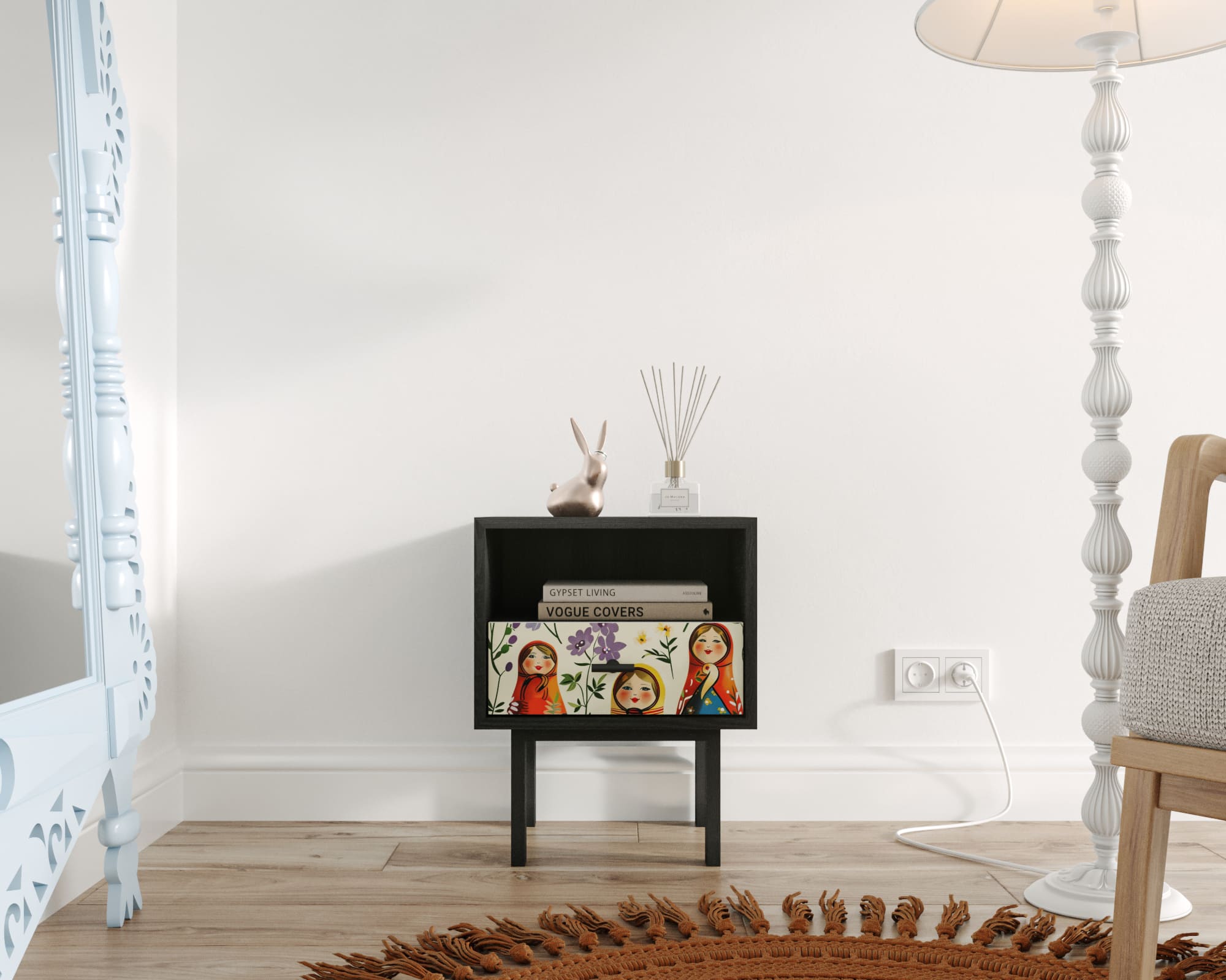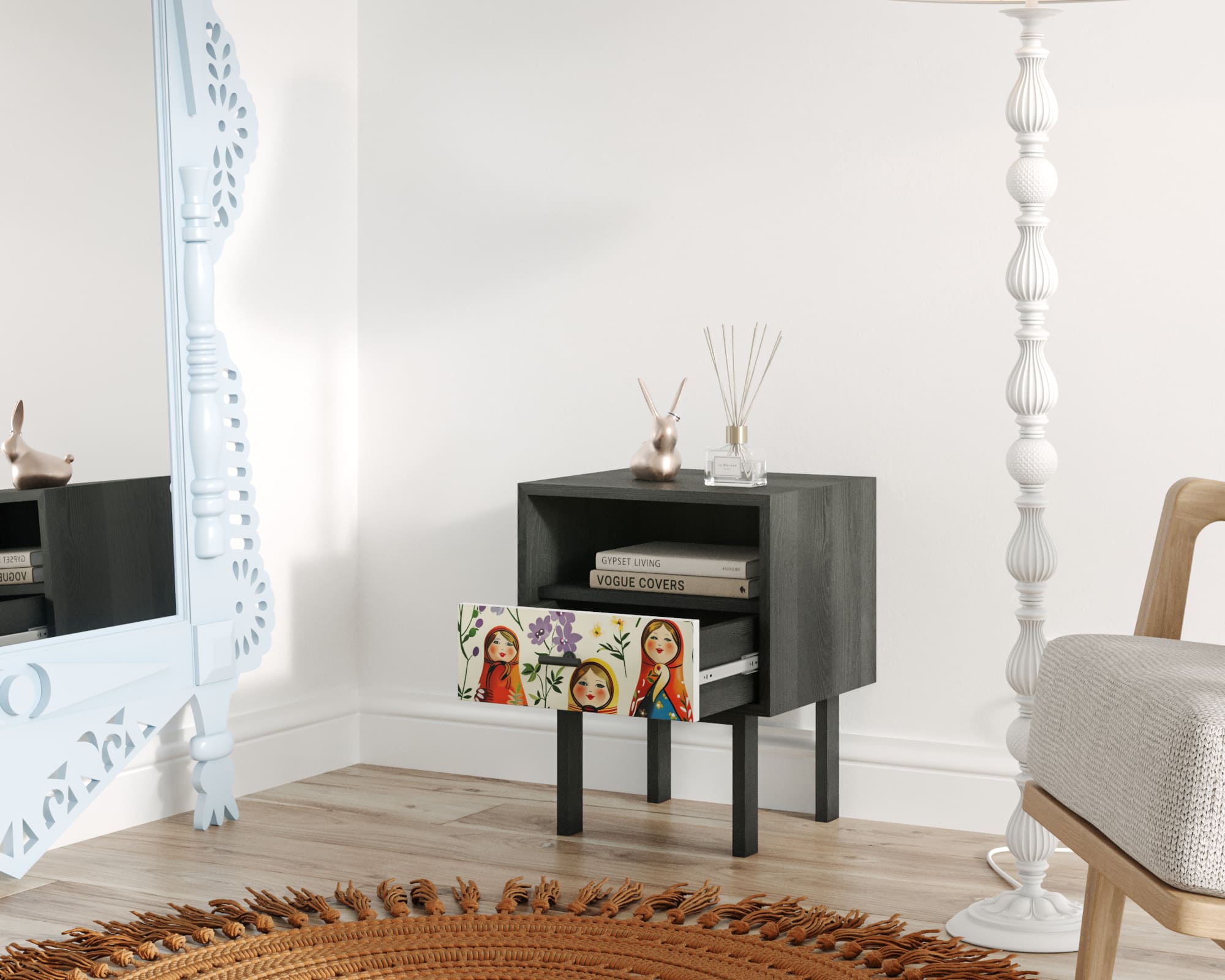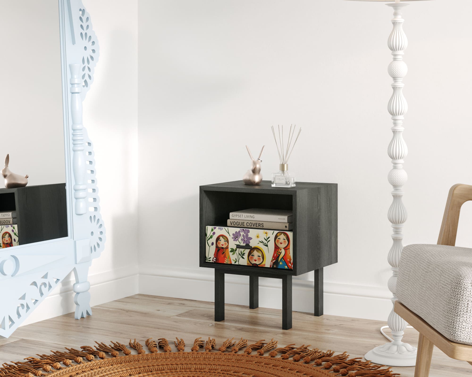 Тумбочка с нижним ящиком "Emerson" Матрешки арт EM17/Art04