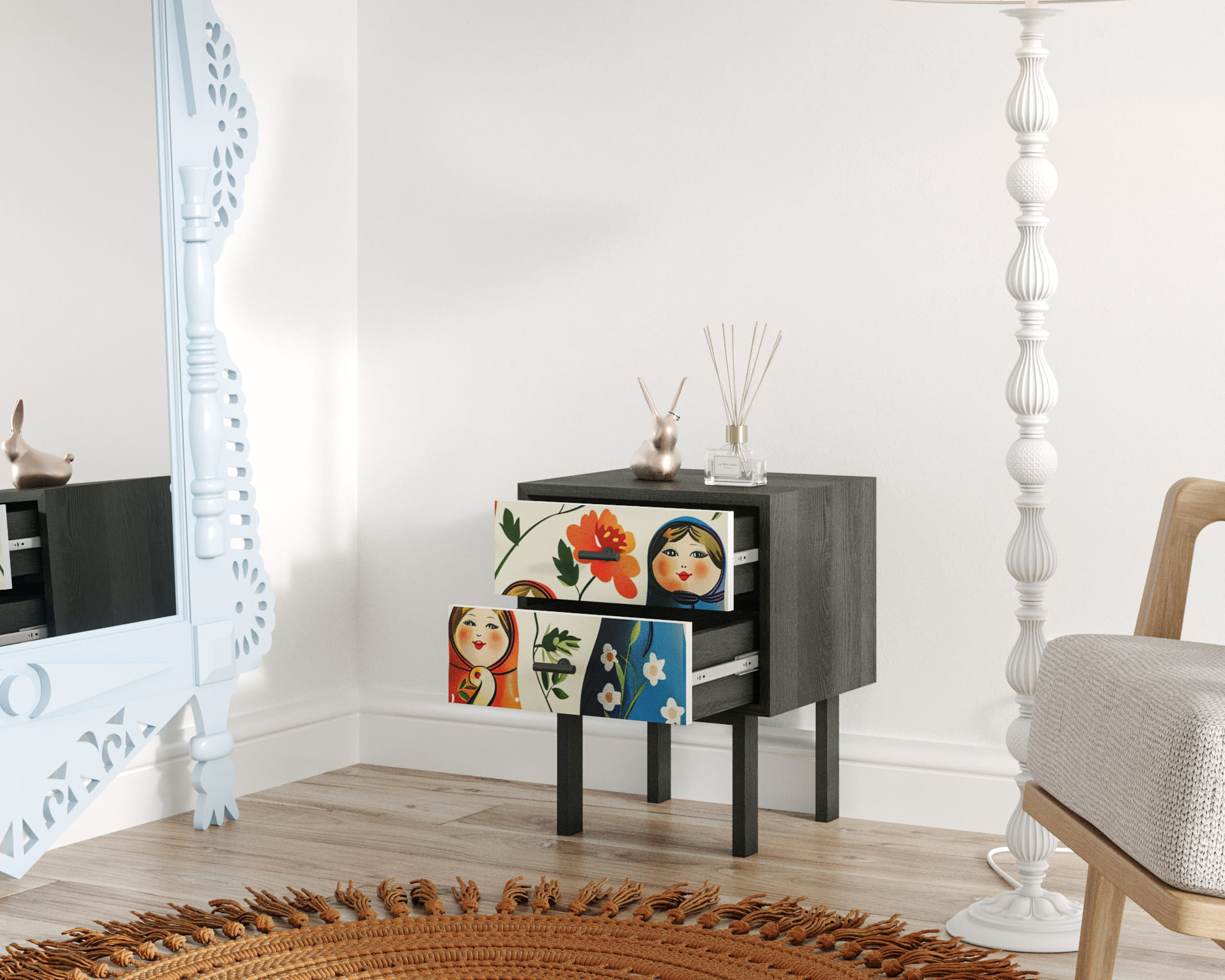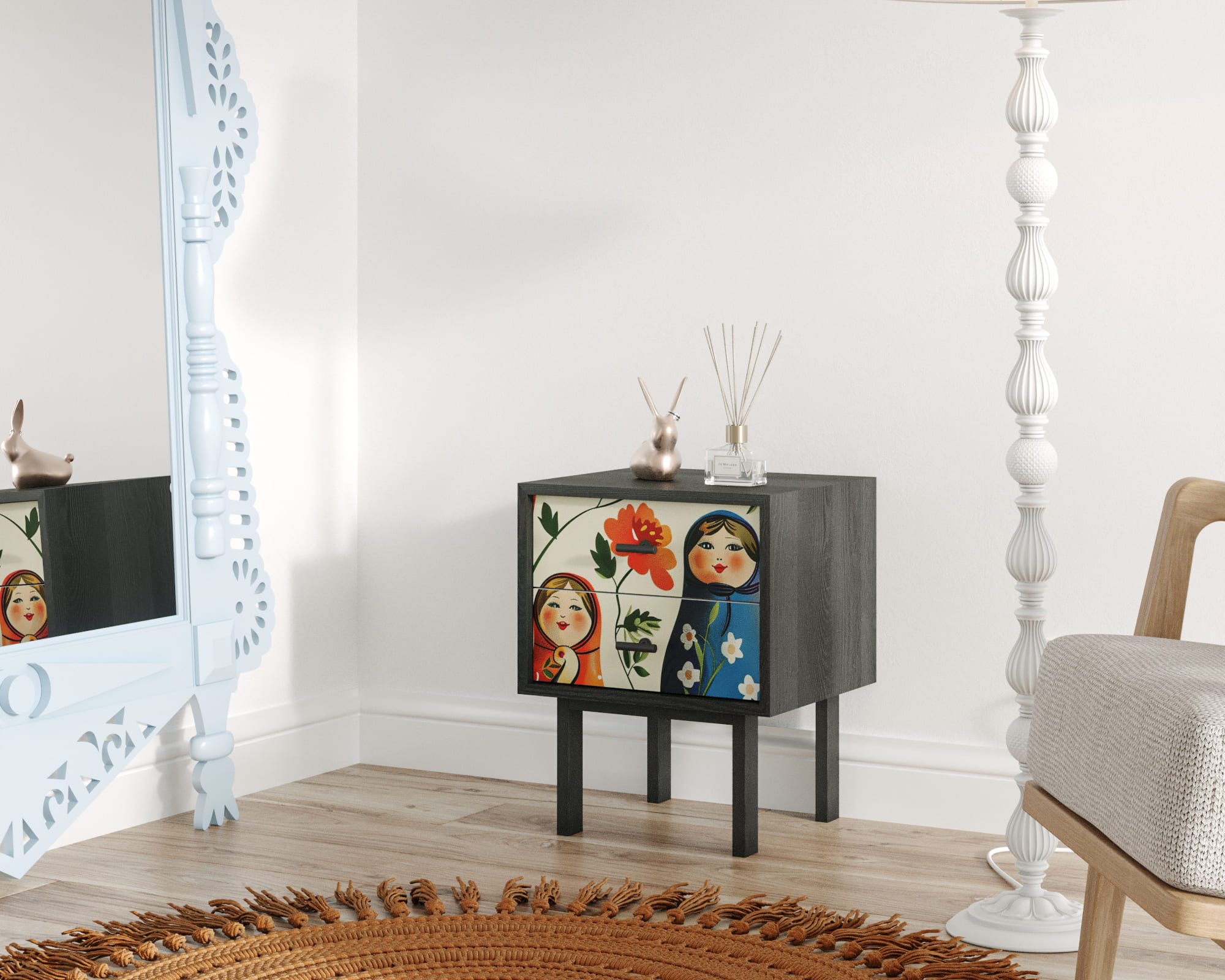 Тумбочка с двумя ящиками "Emerson" Матрешки арт EM16/Art04