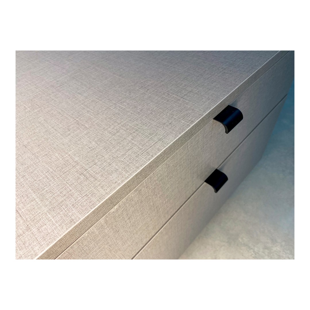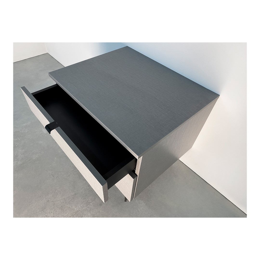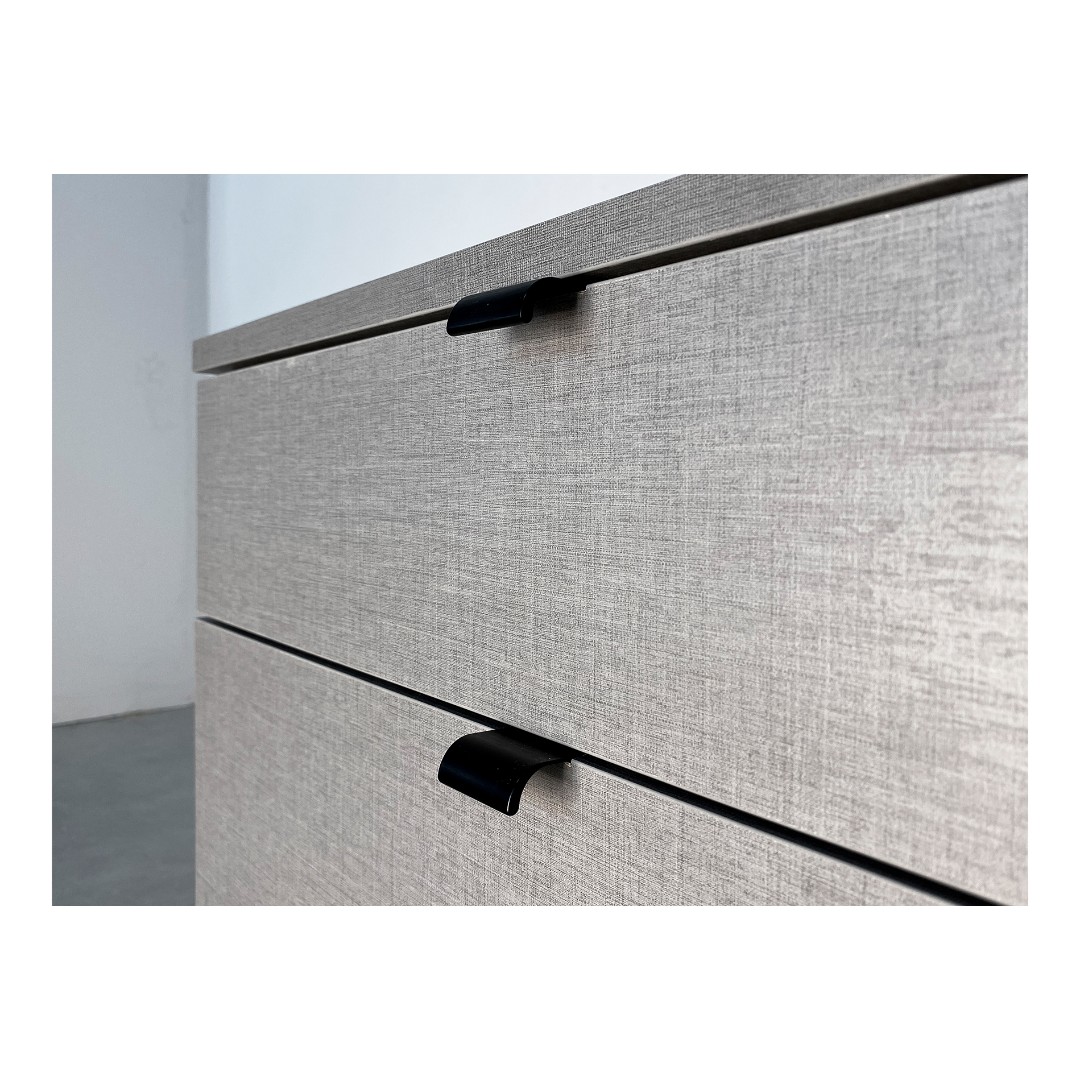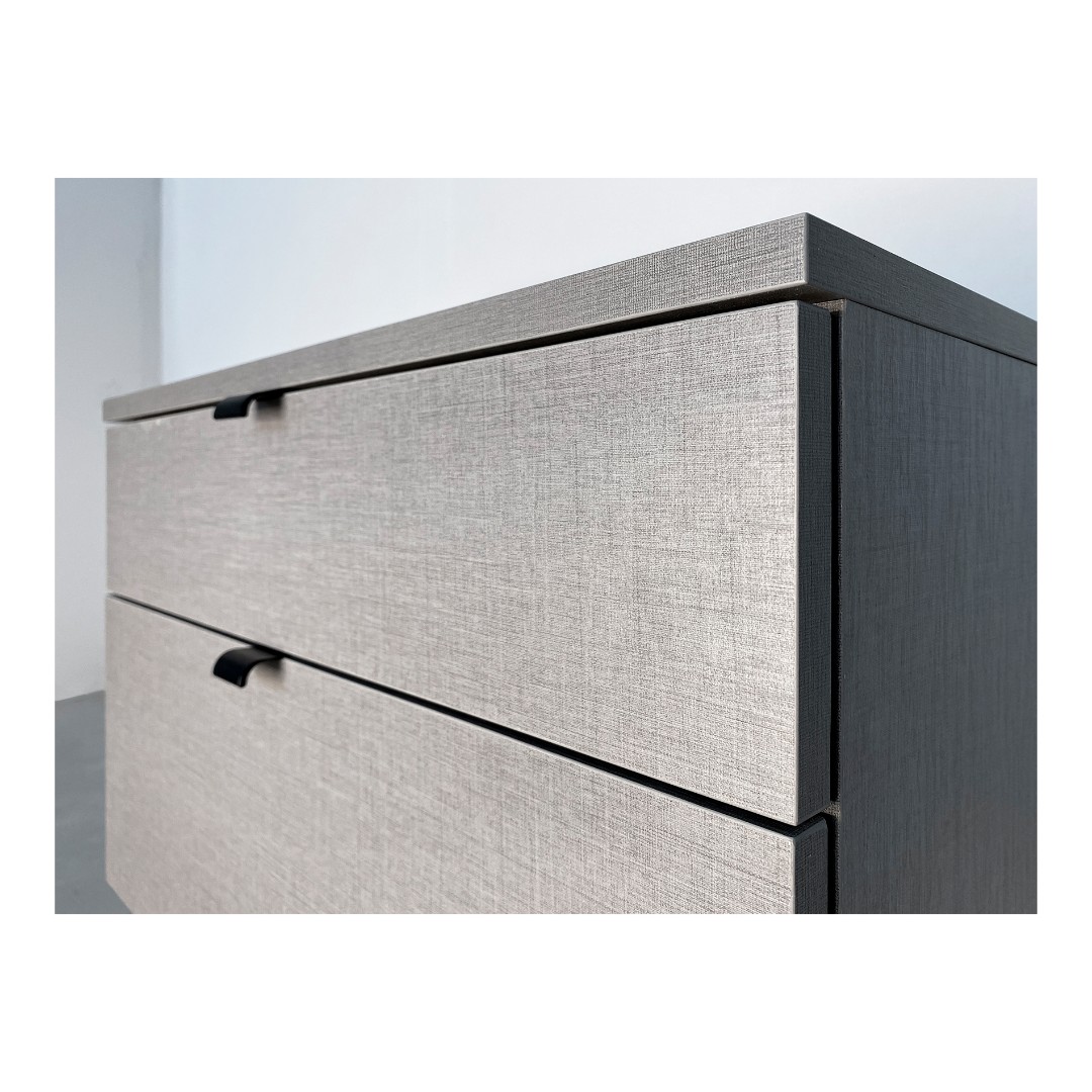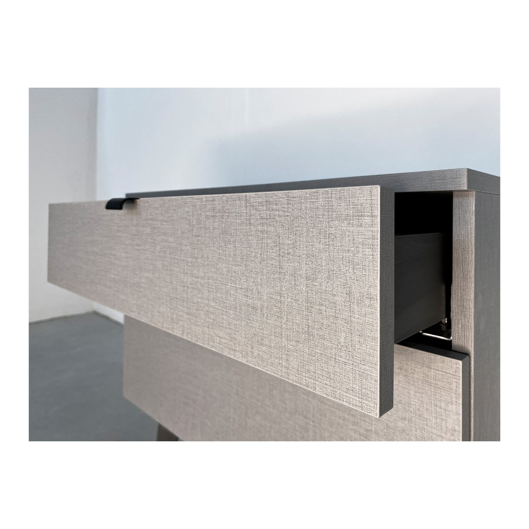 Используются скрытые направляющие с доводчиком, что обеспечивает плавное и бесшумное закрывание, а так же отсутствие видимых частей механизмов на боковинах ящиков. Система полного выдвижения обеспечивает удобный доступ к внутреннему пространству тумбы.