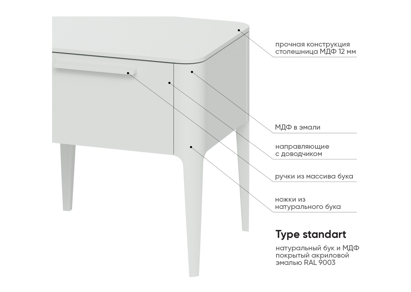 Тумба прикроватная Type 1 ящик (белый)