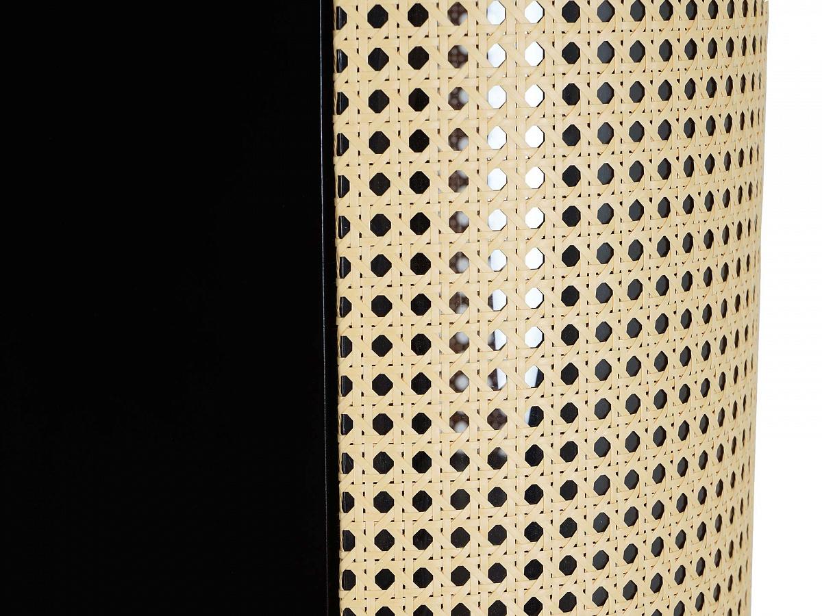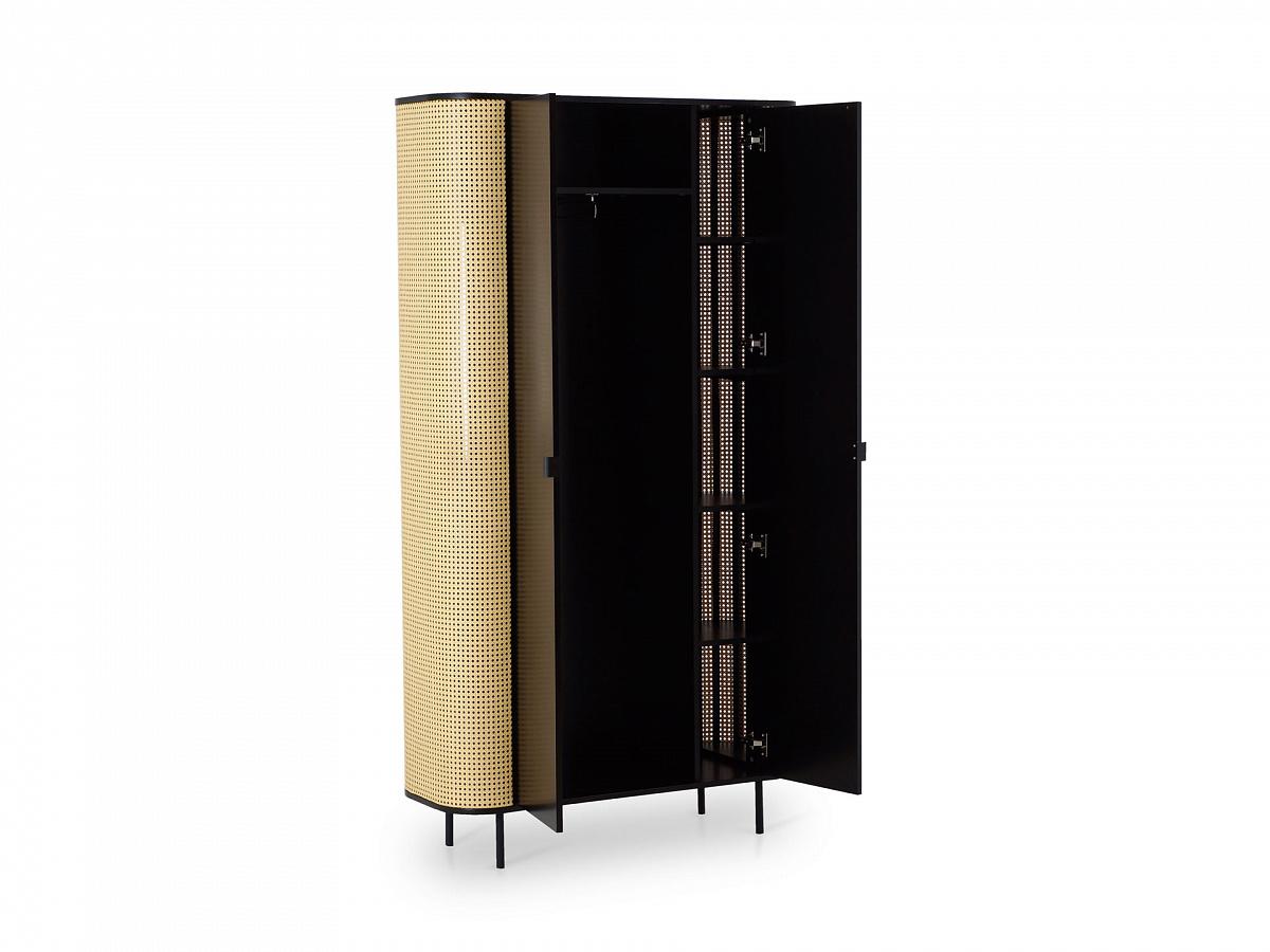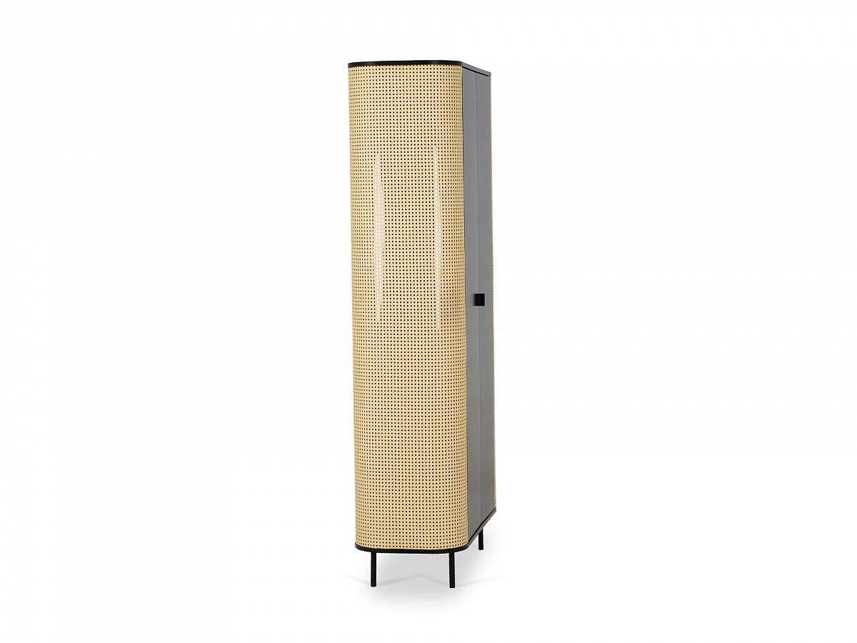В боковых стенках шкафа имеются по четыре несъёмные полки. С фасада боковины декорированы ротангом, от попадания пыли предохраняет подложка из прозрачного ПЭТ листа.