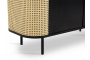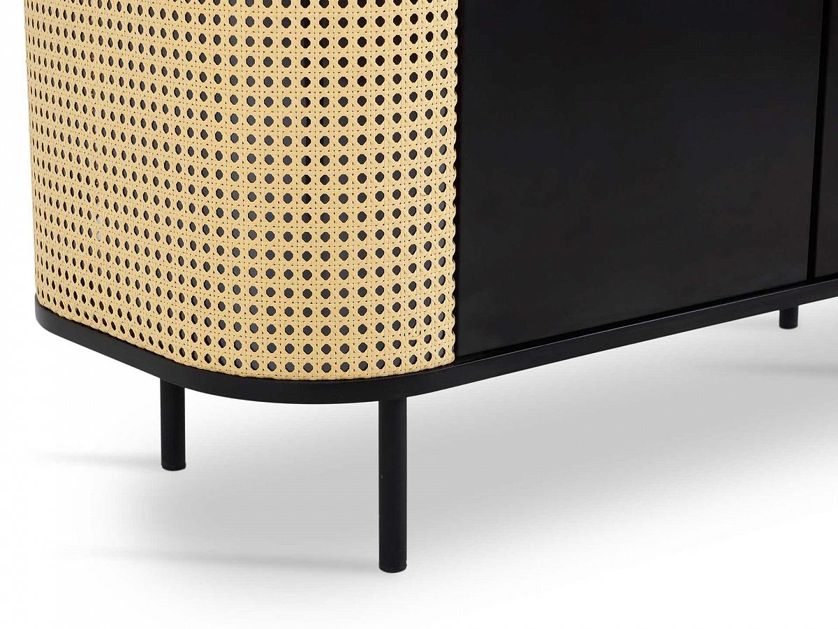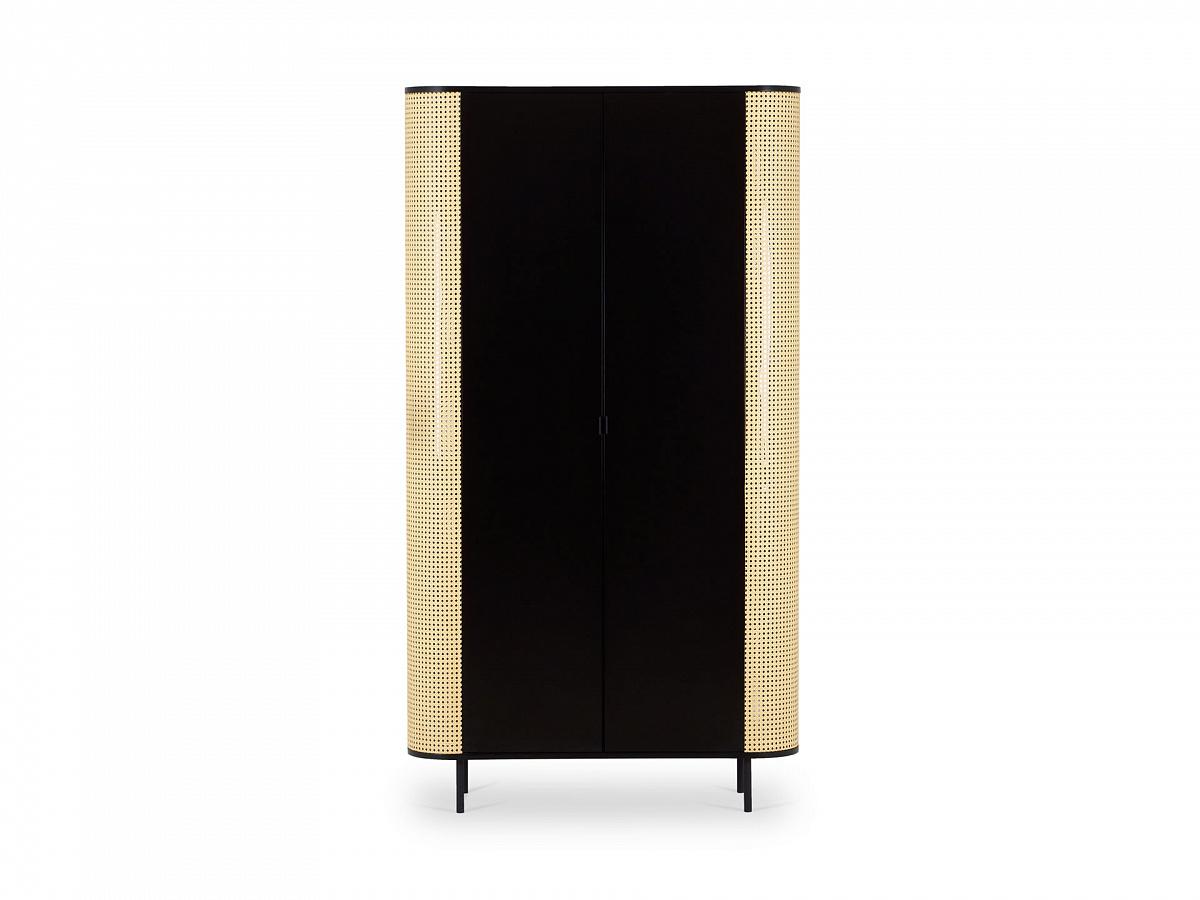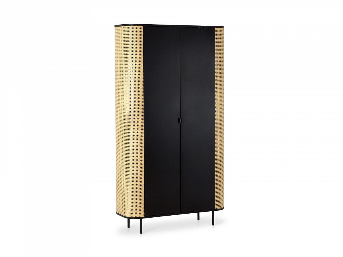 В боковых стенках шкафа имеются по четыре несъёмные полки. С фасада боковины декорированы ротангом, от попадания пыли предохраняет подложка из прозрачного ПЭТ листа.