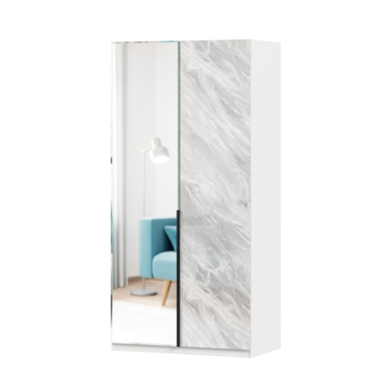 Норд Шкаф двухстворчатый с зеркалом (Белый/Статуарио)