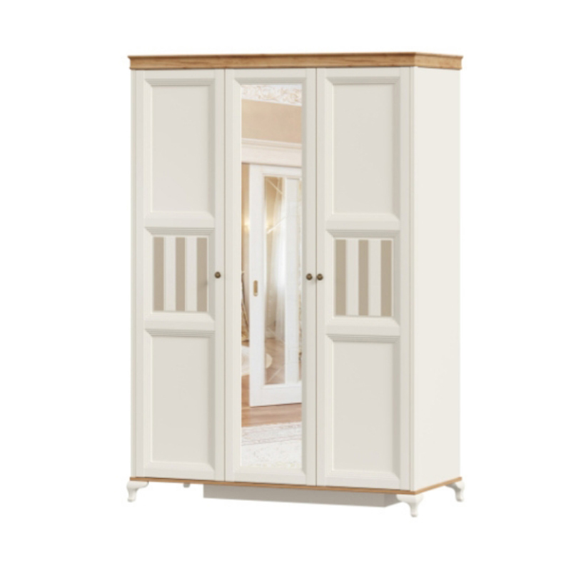 Вилладжио Шкаф трехстворчатый с зеркалом (Алебастр/Дуб Золотой)