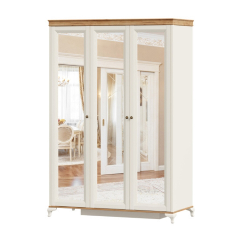 Вилладжио Шкаф трехстворчатый с зеркалами (Алебастр/Дуб Золотой)