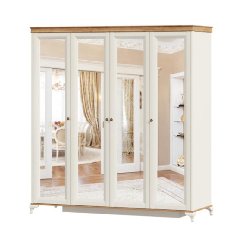 Вилладжио Шкаф четырехстворчатый с 4 зеркалами (Алебастр/Дуб Золотой)