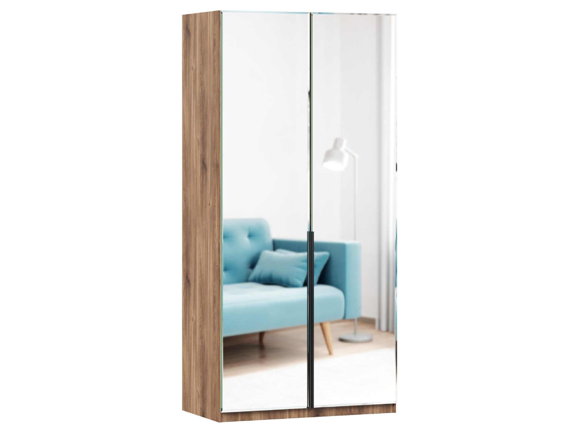 Норд Шкаф двухстворчатый с двумя зеркальными дверями (Дуб Кастелло Бренди)