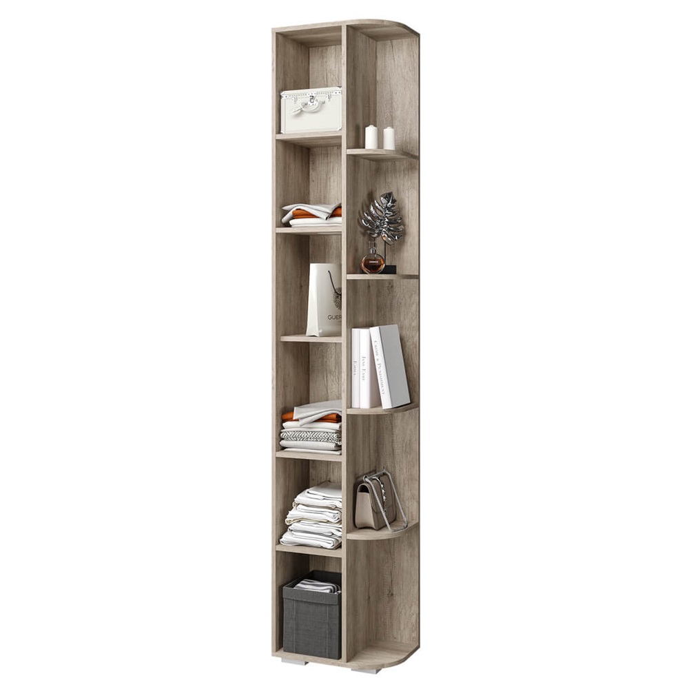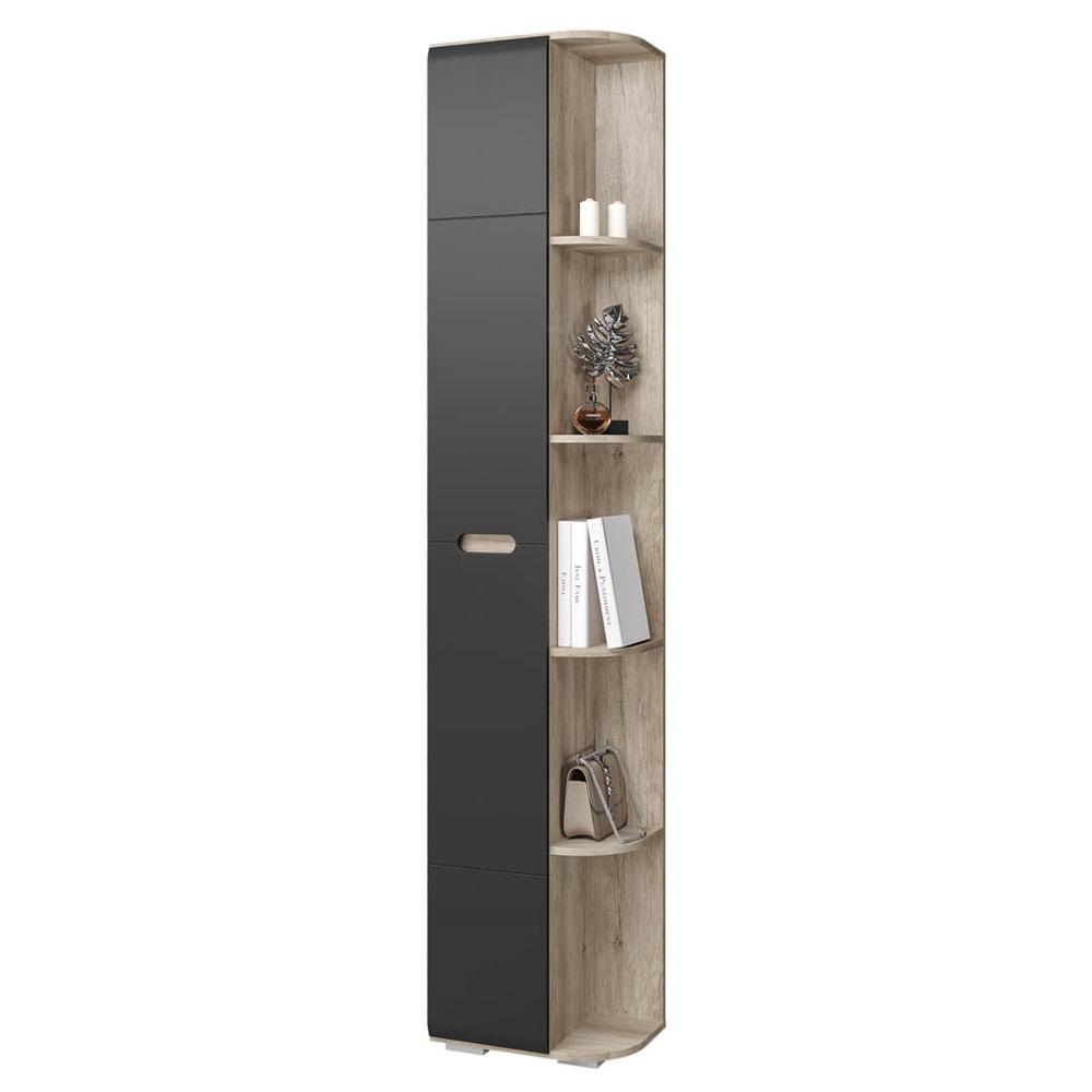 Запросить индивидуальное предложениеПенал Наоми не только организует хранение в любой комнате вашей квартиры. Благодаря угловому завершению с открытыми полками, в нем можно разместить необходимые предметы декора, которые должны быть на виду. Темные фасады дверцы, встроенная ручка и корпус в цвете дуб каньон позвояит изделию вписаться в современный интерьер. Красивое и практичное решение по лучшей цене — это Пенал с угловым завершением Наоми ПН-15
