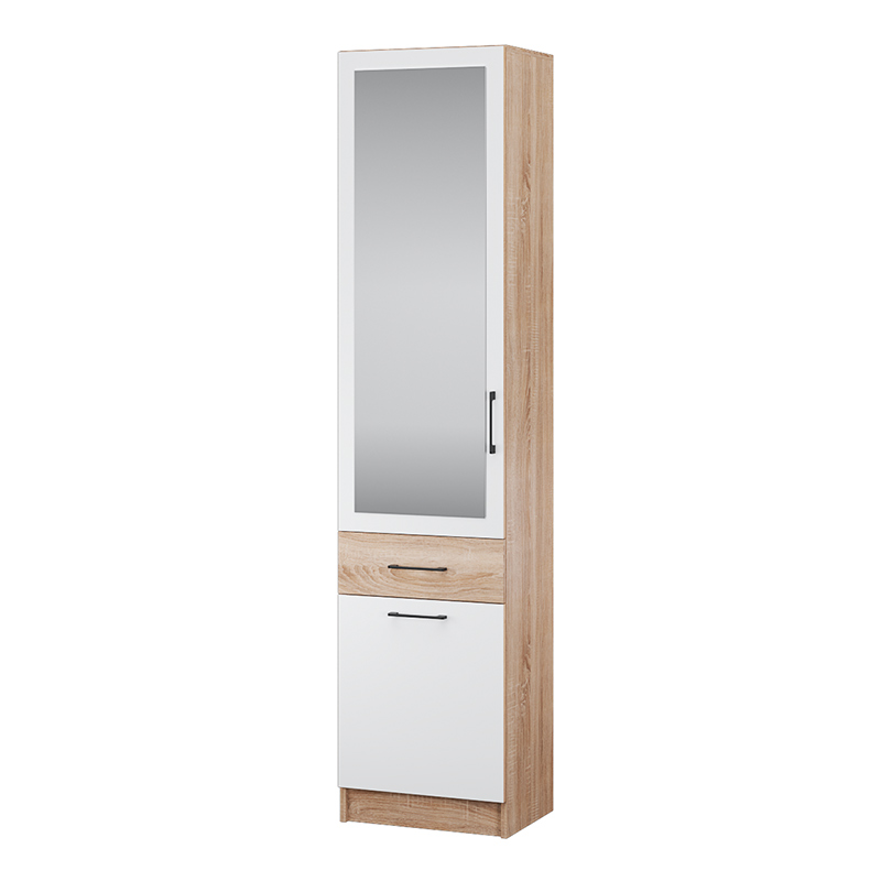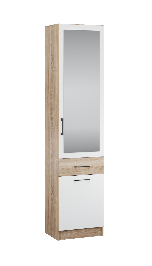 Запросить индивидуальное предложениеКомбинированный шкаф-пенал Денвер — универсальное решение для организации хранения в малогабаритной прихожей. Имеет набор полок за дверцей с зеркалом, ящик, и закрытую вместительную нишу внизу.