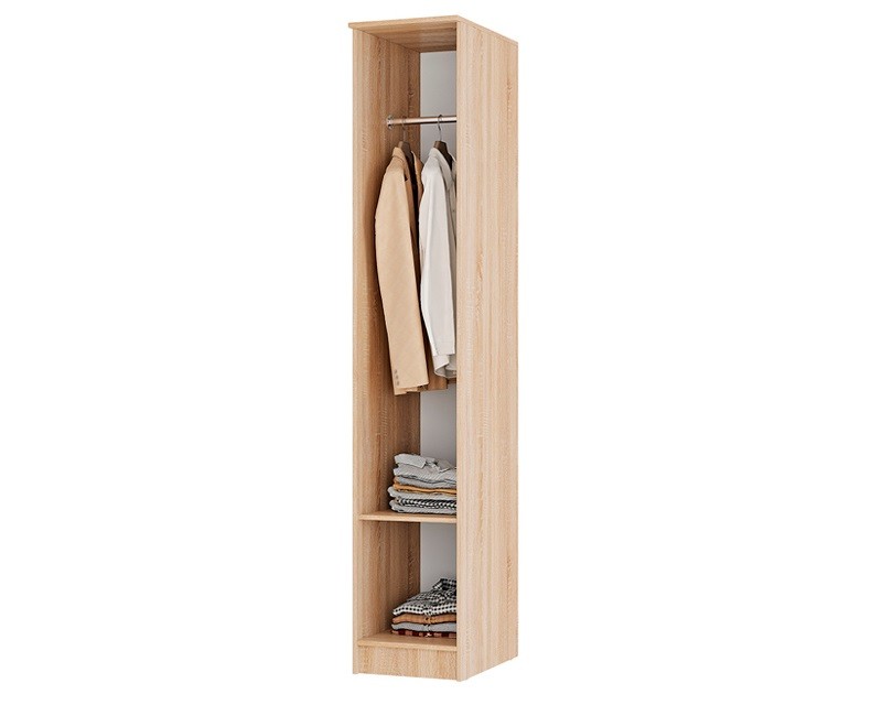 Запросить индивидуальное предложениеУзкий шкаф-пенал с полками и штангой по достоинству оценятвладельцы малогабариток и квартир с нестандартной планировкой, ведь ширина модуля всего 40 см! Разноплановое наполнение позволит Вам самостоятельно решить, что будет находиться внутри шкафа: комплект вместительных полок или несколько полок и штанга для одежды на плечиках. Модель выполнена в едином для всей коллекции Сакура декоре «дуб сонома/белый» с имитацией текстуры натурального дерева и выступает прекрасным функциональным дополнением к скандинавскому интерьеру.