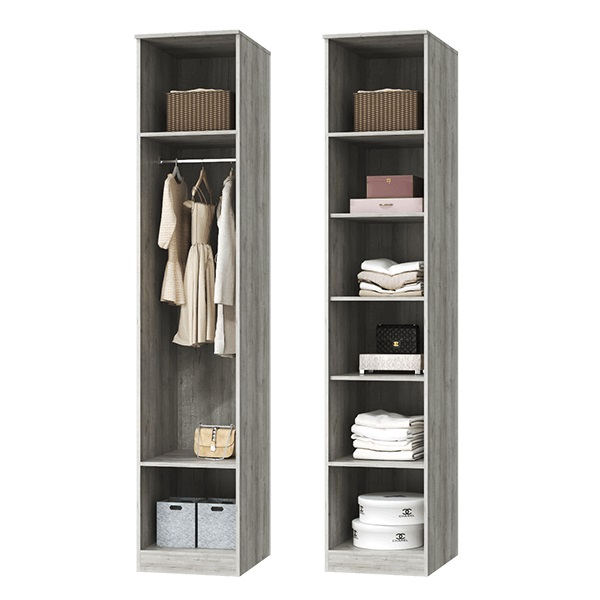 Запросить индивидуальное предложениеЕсли Вам нужно организовать хранения одежды на плечиках и в сложенном виде, используя при этом минимум пространства, присмотритесь к однодверному шкафу-пеналу Лагуна. Ультрамодная коллекция мебели для спальни Лагуна выполнена в приятном сочетании нескольких оттенков: дуба серого с древесной текстурой, серо-голубого и белого снега софт. Такая палитра располагает к спокойствию и умиротворению, что является обязательным условием интерьера спальной комнаты.