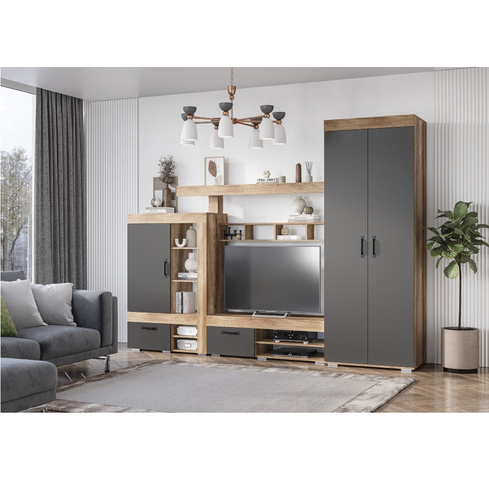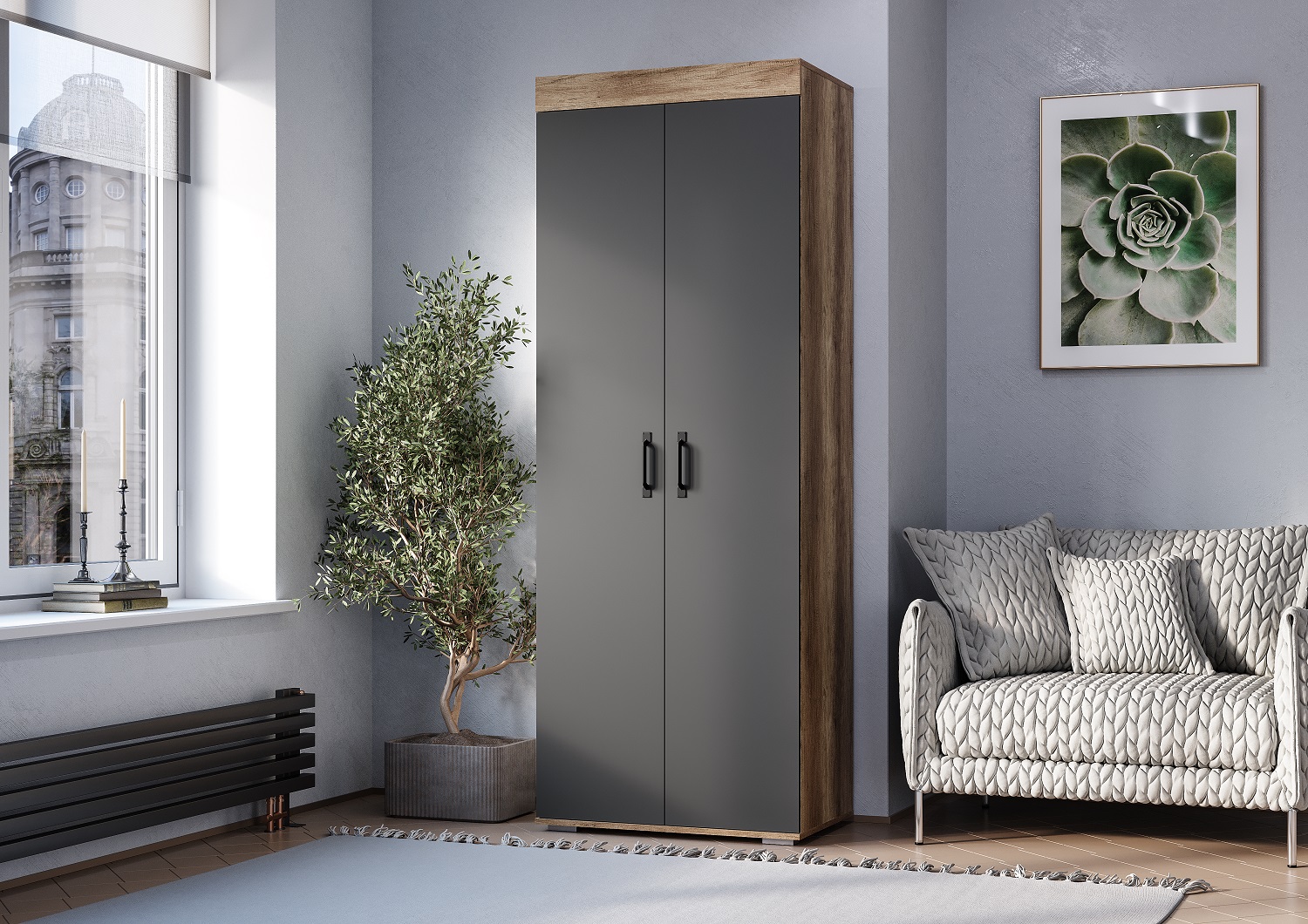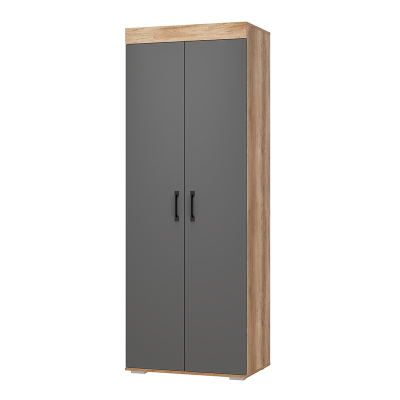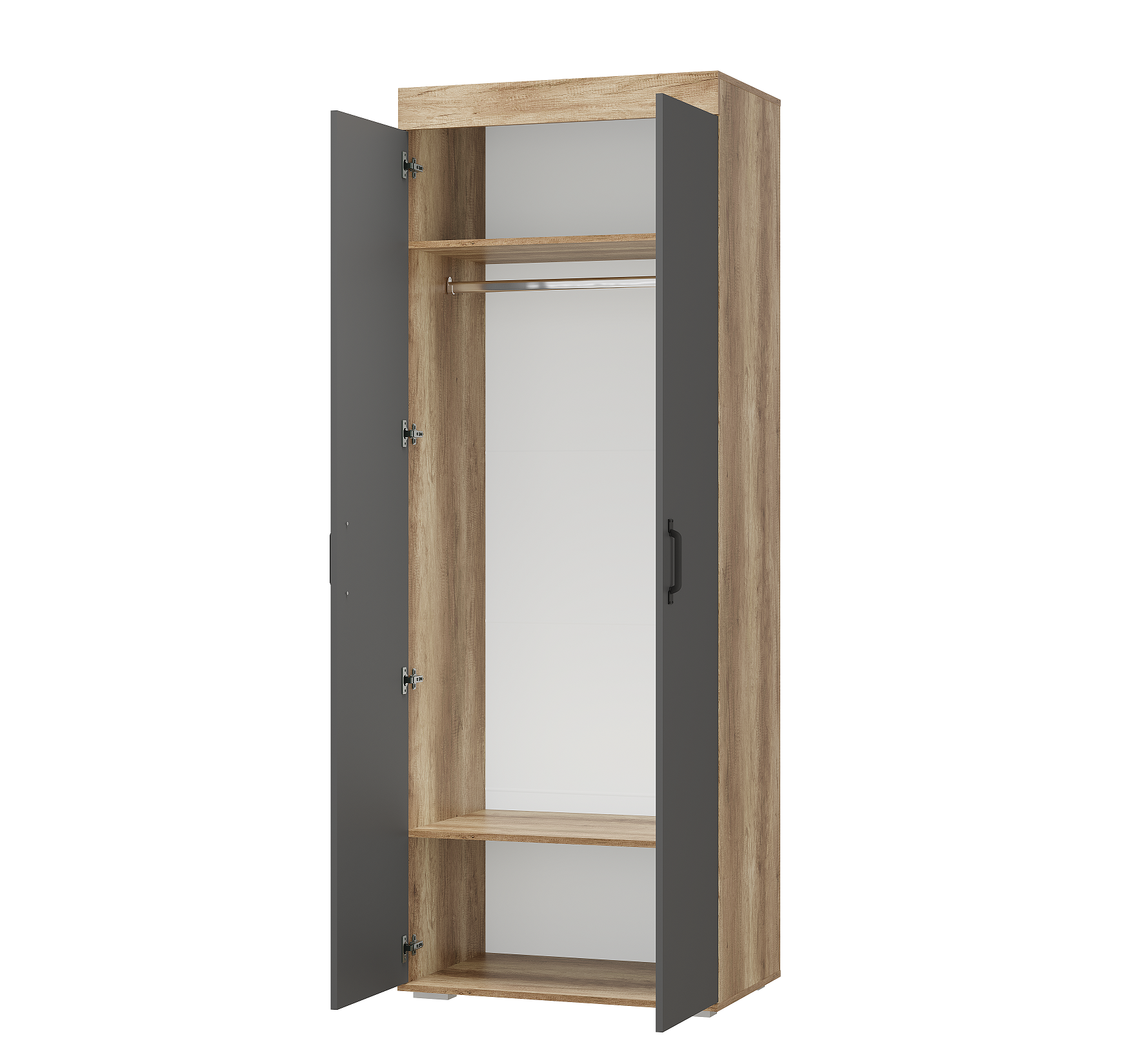 Запросить индивидуальное предложениеНовая модульная коллекция Прима в актуальном декоре дуб каньон/графит удачно впишется в современную обстановку Вашей квартиры и позволит организовать грамотное хранение вещей в гостиной и спальне. Приятный древесный оттенок корпуса гармонично дополнен матовым графитом, в котором исполнены фасады. Шкаф для одежды и белья Прима оснащен широкой продольной штангой для деликатной одежды на плечиках и двумя полками.
