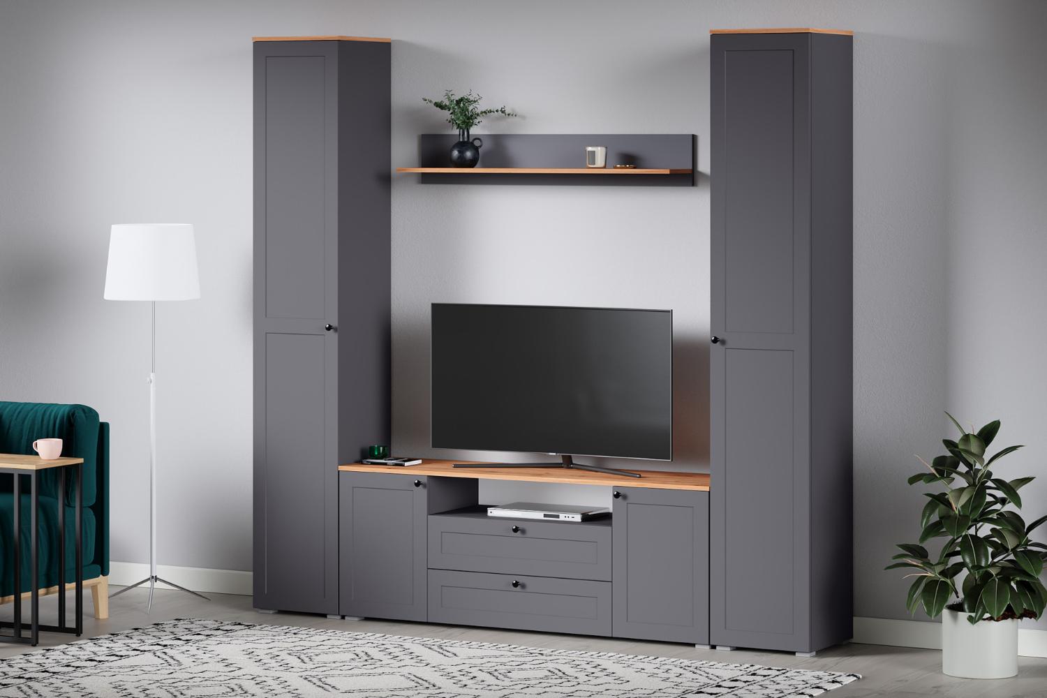 Шкаф-пенал 13.227 Остин Серый Графит, Дуб Золотой