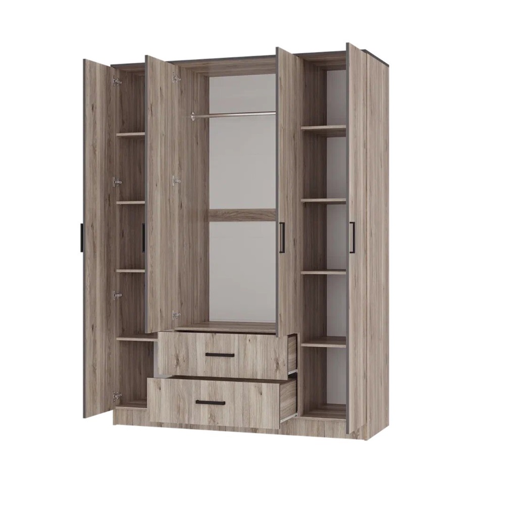 Запросить индивидуальное предложениеЧетырехстворчатый шкаф «Титан» — это элегантное и функциональное решение в трендовом древесном декоре с текстурой дуба.