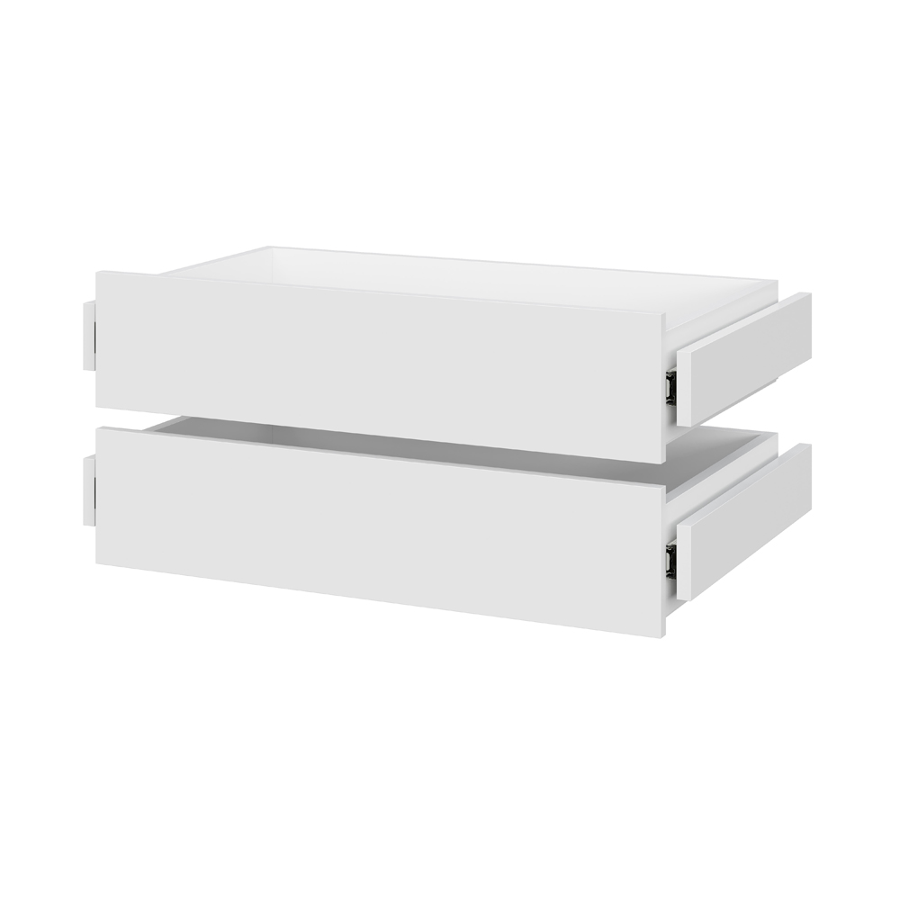 Шкаф оснащен вместительными полками, ящиками и вешалкой-штангой.