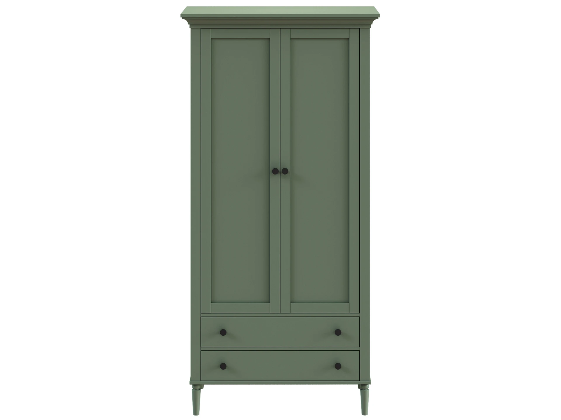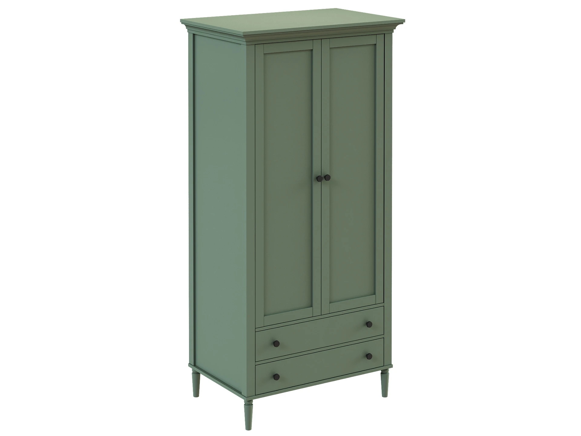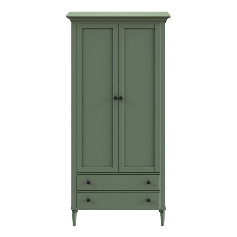 Шкаф Blues с двумя распашным дверями и двумя выдвижными ящиками. В отделении за дверями располагается продольная штанга для хранения одежды на плечиках, над штангой полка. Выдвижные ящики расположены в нижней части шкафа. Фасады из МДФ толщиной 16 мм. Корпуса ящиков изготовлены из ЛДСтП толщиной 16 мм.