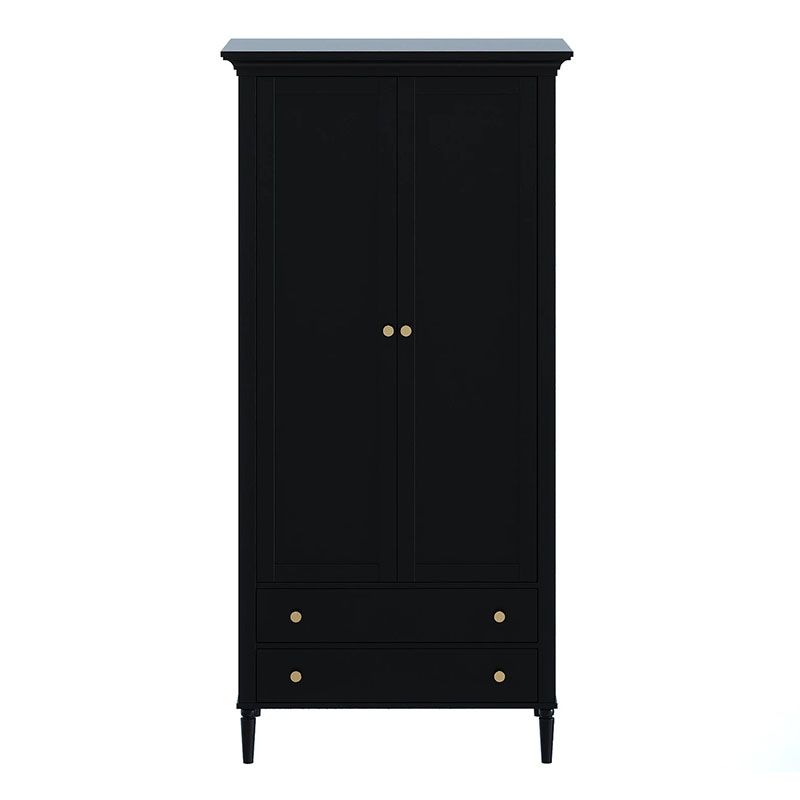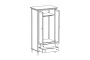 Шкаф Blues с двумя распашным дверями и двумя выдвижными ящиками. В отделении за дверями располагается продольная штанга для хранения одежды на плечиках, над штангой полка. Выдвижные ящики расположены в нижней части шкафа. Фасады из МДФ толщиной 16 мм. Корпуса ящиков изготовлены из ЛДСтП толщиной 16 мм.