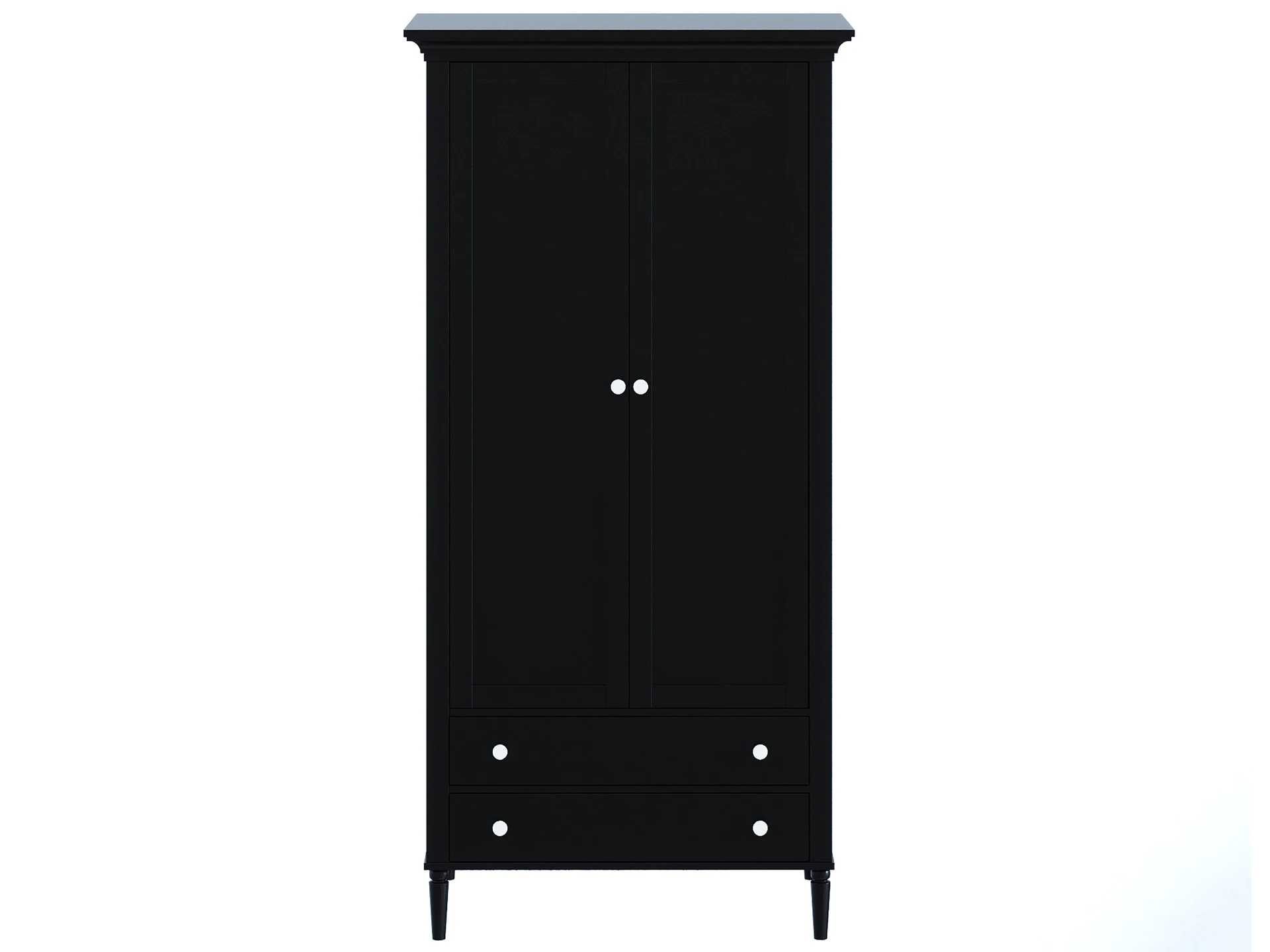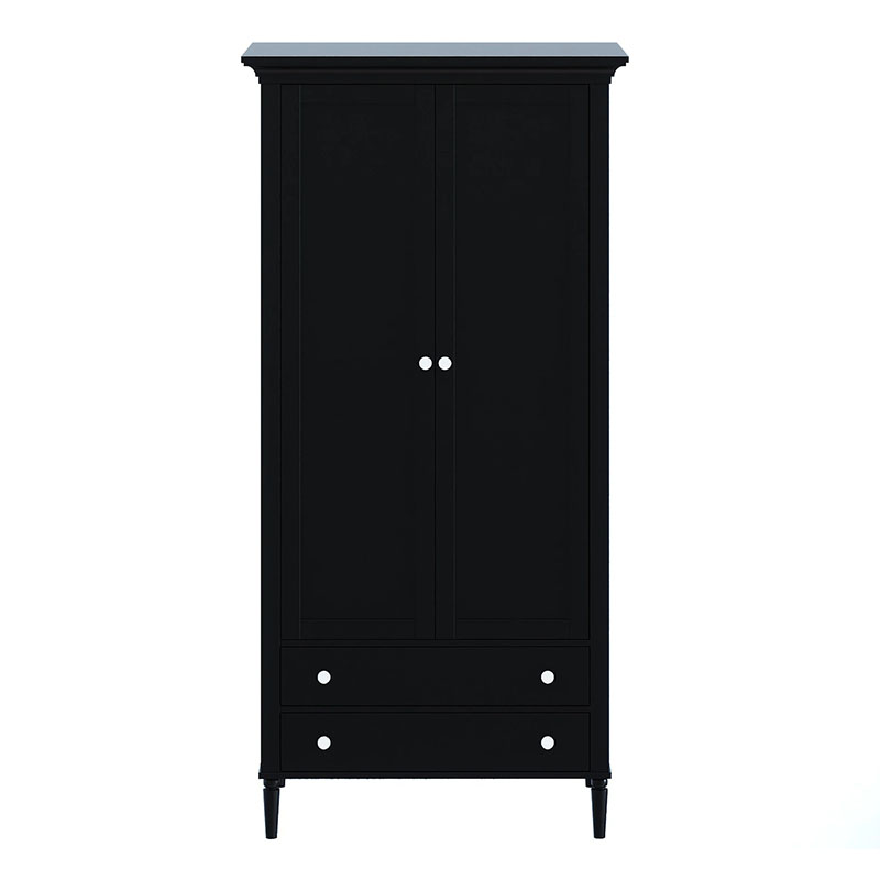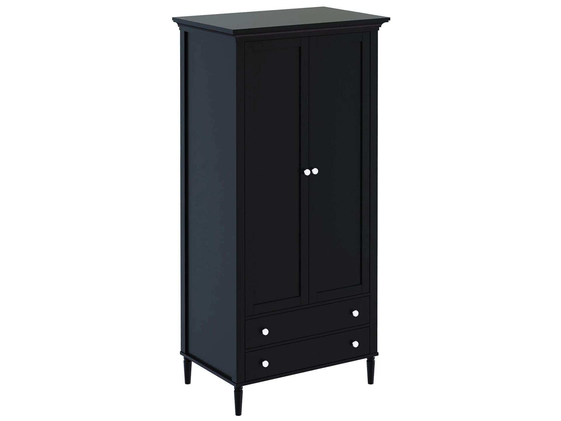 Шкаф Blues с двумя распашным дверями и двумя выдвижными ящиками. В отделении за дверями располагается продольная штанга для хранения одежды на плечиках, над штангой полка. Выдвижные ящики расположены в нижней части шкафа. Фасады из МДФ толщиной 16 мм. Корпуса ящиков изготовлены из ЛДСтП толщиной 16 мм.