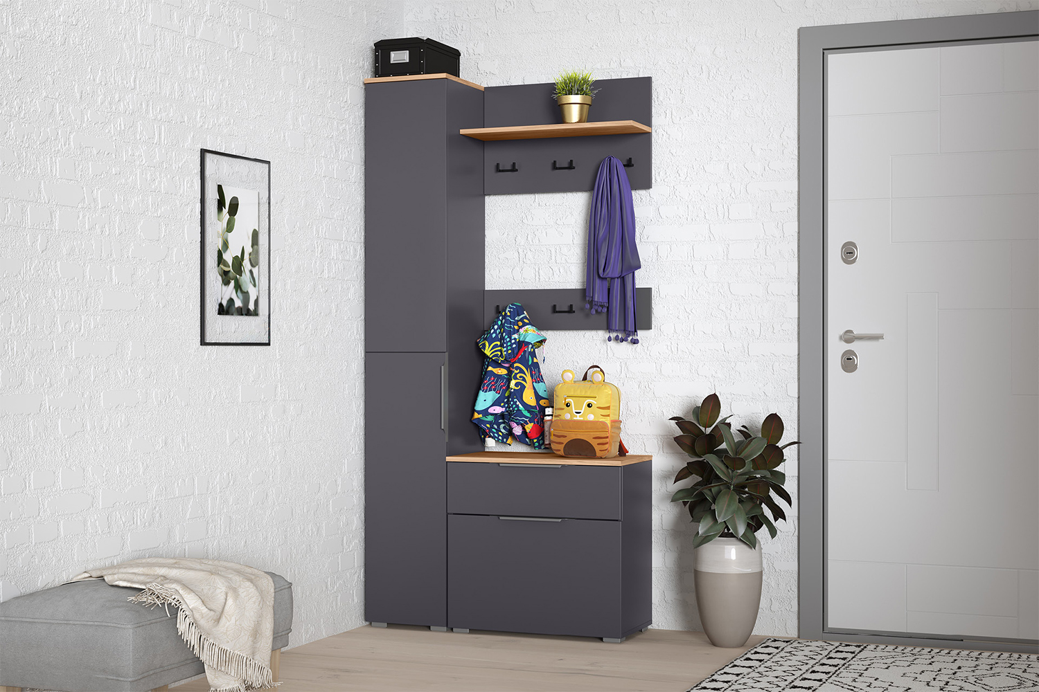 Шкаф-пенал Октава 13.228, Серый графит, Дуб золотой