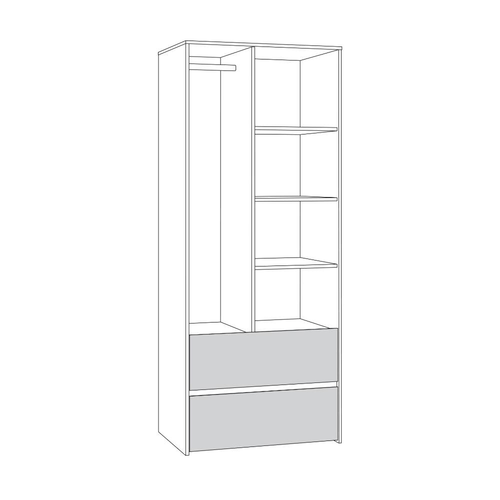 Запросить индивидуальное предложениеШкаф для одежды Торонто 13.333 — это стильный, компактный и практичный шкаф для одежды. Он оборудован горизонтальной штангой для одежды на плечиках с одной стороны, а с другой стороны имеет три полки и два выдвижных ящика. Двери шкафа открываются за край, что делает его более функциональным и удобным в использовании.
