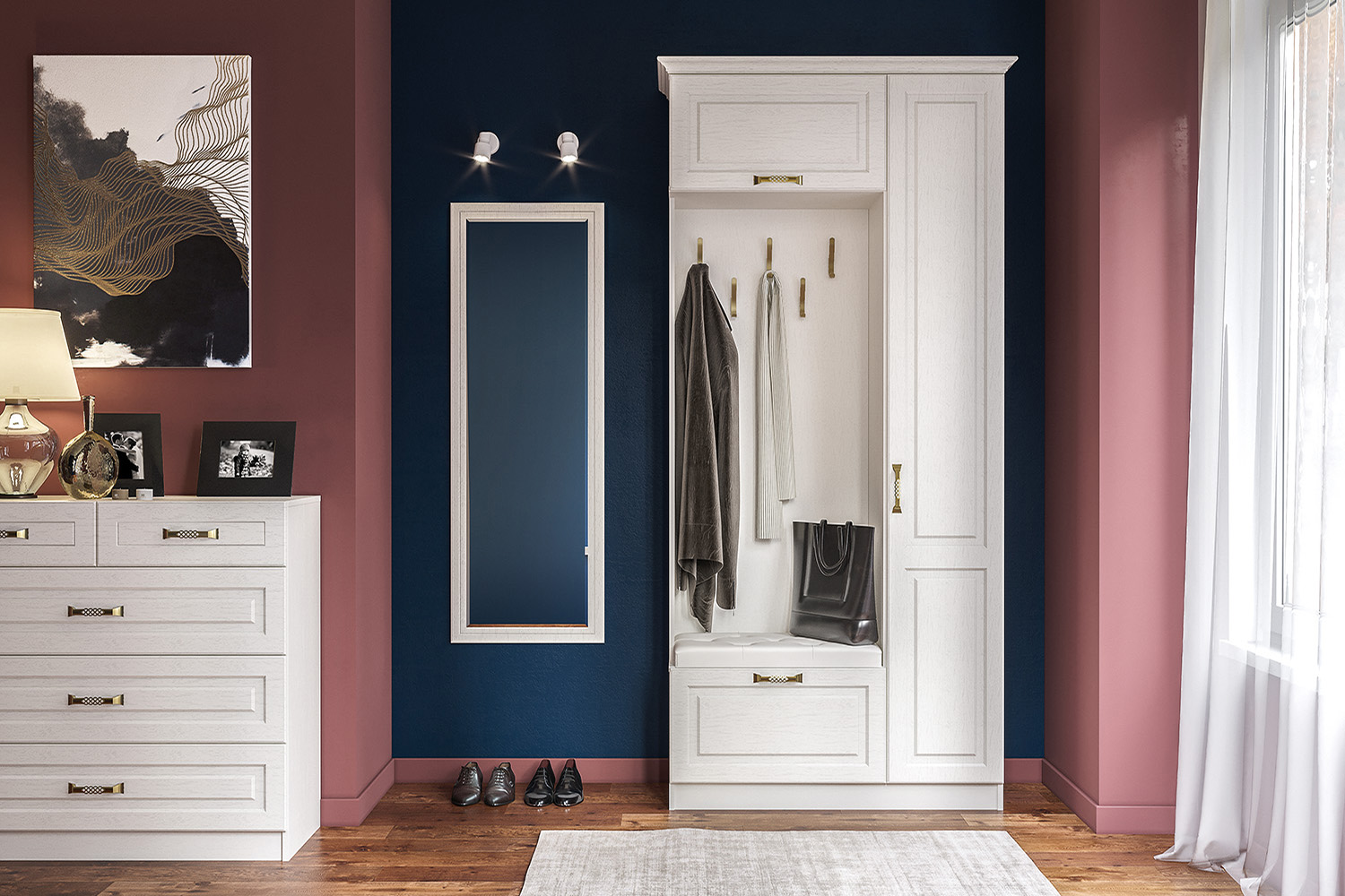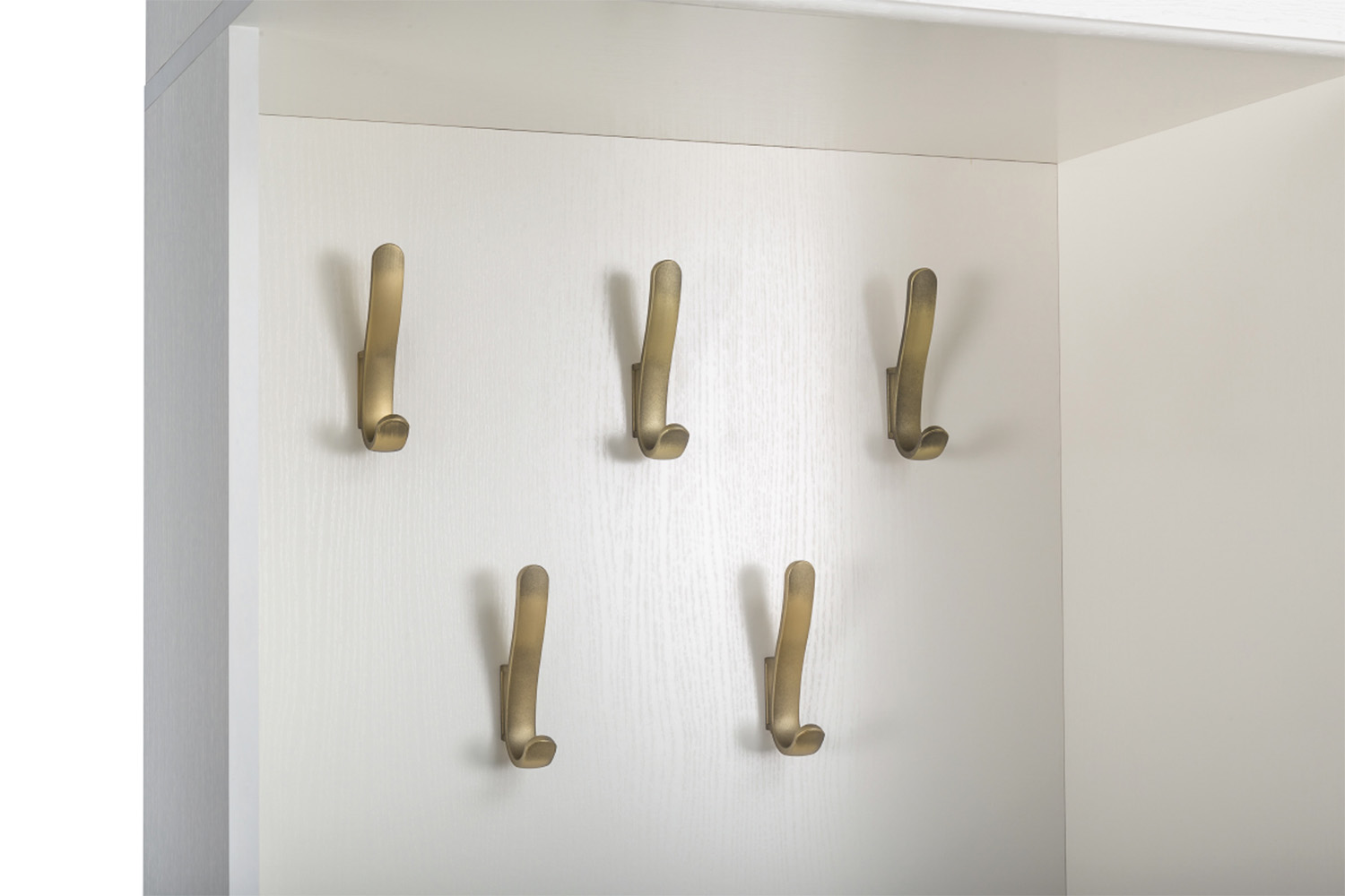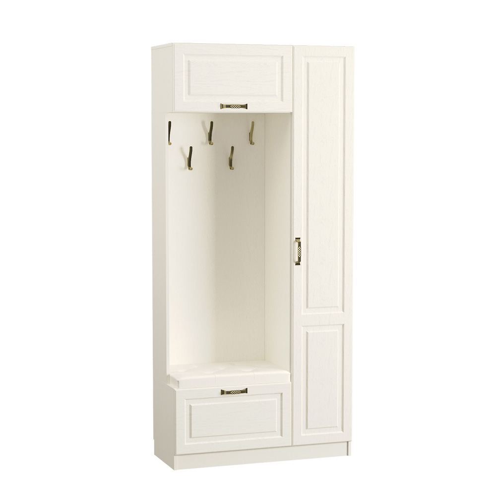 Запросить индивидуальное предложениеПрихожая Ливерпуль — это компактная классическая прихожая, которая сочетает в себе многофункциональность и удобство использования. Комбинированный шкаф Ливерпуль 13.21 состоит из открытой вешалки с крючками и одностворчатого шкафа с полками. Открытая вешалка оснащена антресольной полкой для головных уборов и распашным отделением для обуви.