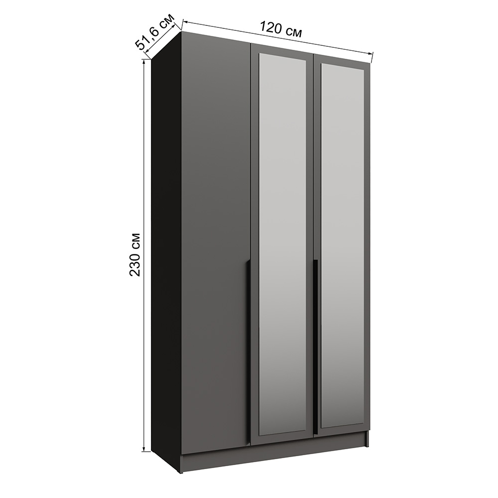 Распашной шкаф с зеркалом Мадрид 1,2, Графит серый