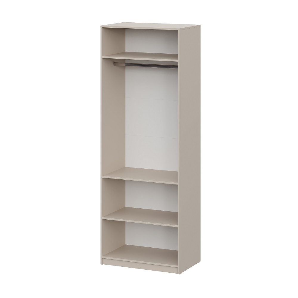 Шкаф оснащен вместительными полками и штангой для вешалок.