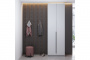 За распашными дверями расположено одно отделение со штангой и несколько полок. Две удобные ниши в нижней части шкафа подойдут для обуви, коробок или органайзеров. В верхней части шкафа расположены три ниши – для хранения одежды, аксессуаров или головных уборов.