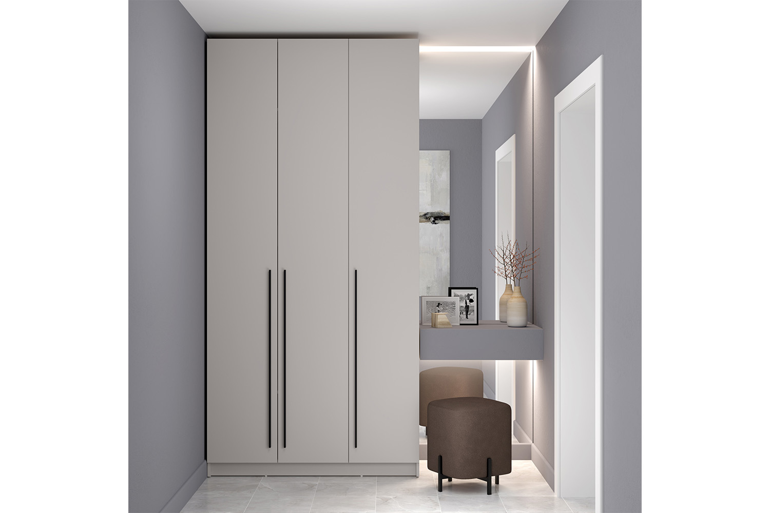 Запросить индивидуальное предложениеШкаф для одежды Брандо 67.08 – стильный распашной трехстворчатый шкаф в минималистичном современном стиле.