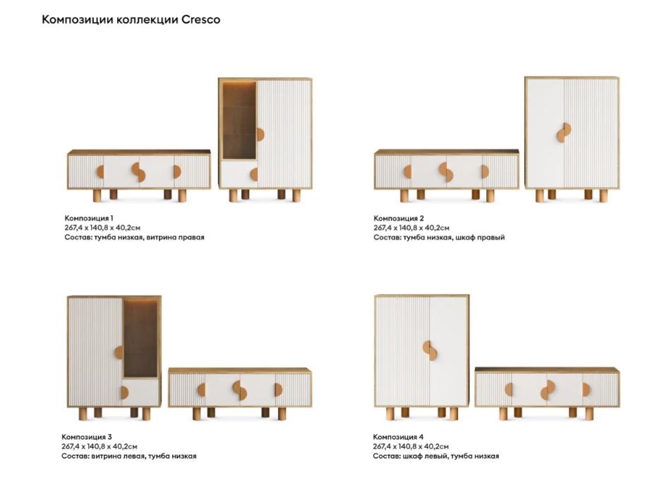 Запросить индивидуальное предложениеCresco — стильная коллекция корпусной мебели для хранения вещей. Идея дизайна — нескучный минимализм. С одной стороны — практичность, спокойный внешний вид, универсальность. С другой — смелость, контрастность, оригинальность. Четкая геометрия корпуса и круглые ножки из бука, рельефная и гладкая части фасада, ассиметричное расположение ручек-полумесяцев — эти элементы отвечают за интересный внешний вид, который наполнит ваш интерьер разнообразием, ритмичностью, фактурами, акцентами.