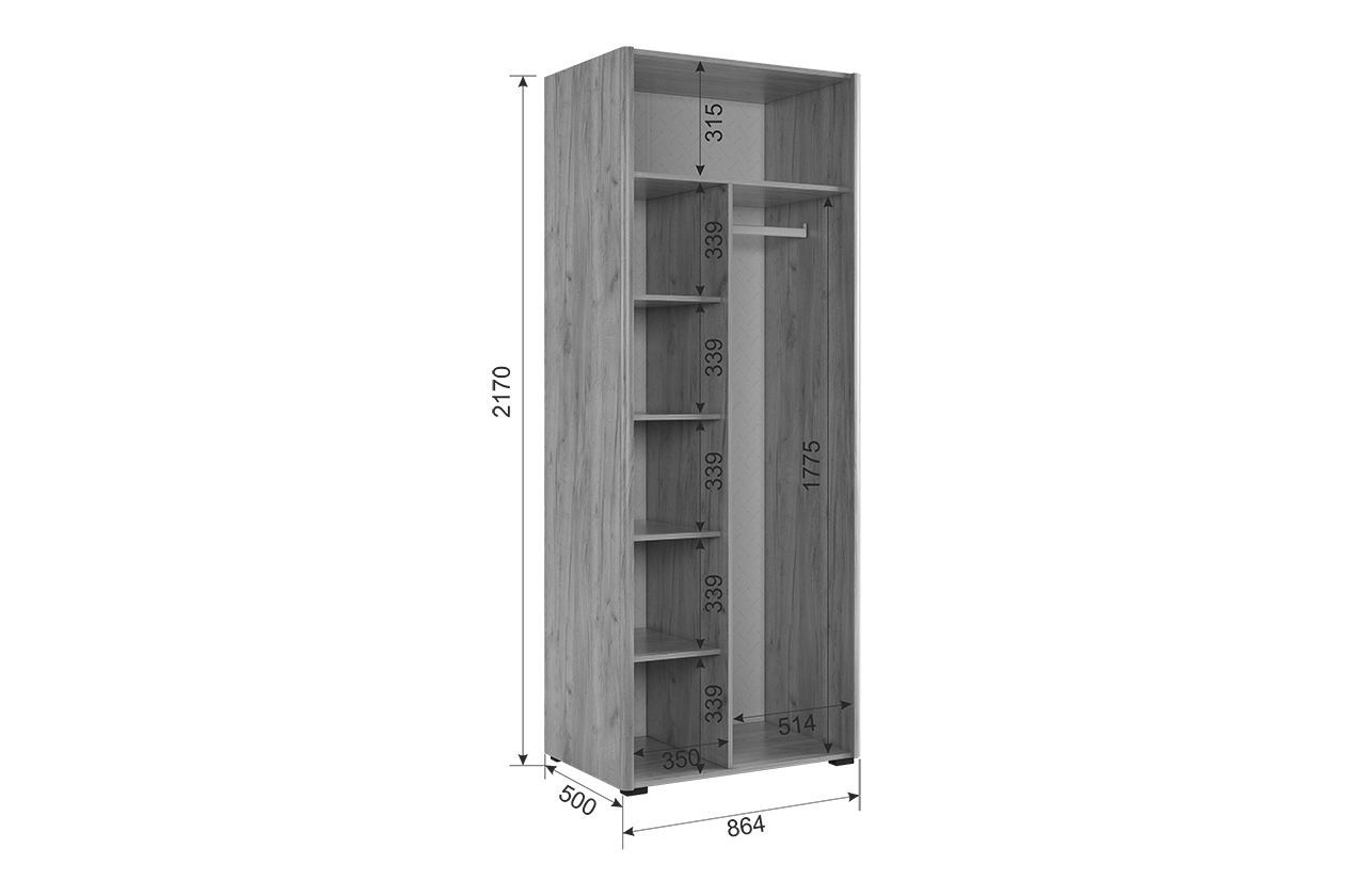 Запросить индивидуальное предложениеСостоит из: пяти полок и штанги для одежды.