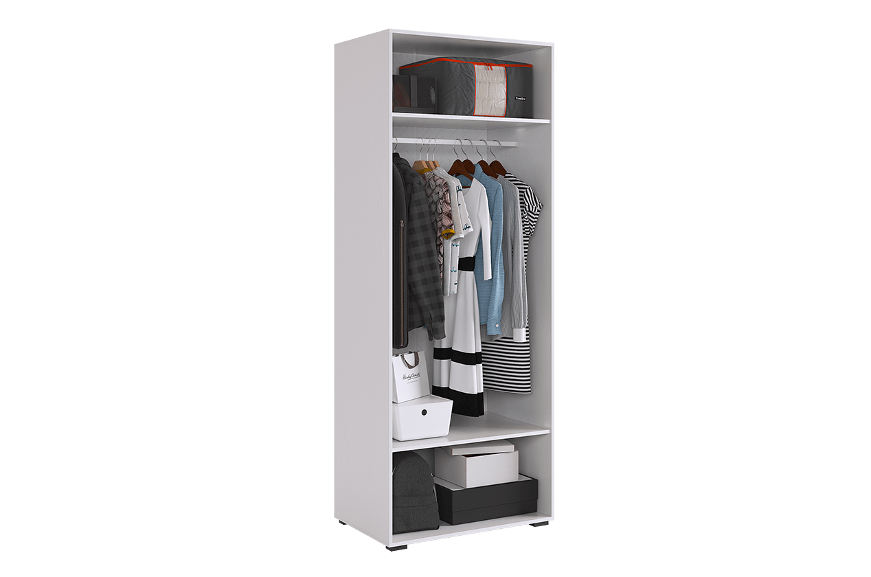 Что делает этот шкаф особенным? Его корпус изготовлен из лдсп белого дерева, что придает ему легкость и свежий вид. Фасады, выполненные из мдф и облицованные пленкой пвх белого матового цвета, добавляют шкафу элегантности. Уникальной особенностью дизайна являются вертикальные полосы на фасаде, созданные с помощью фрезеровки. Петли с доводчиком гарантируют бесшумное закрывание фасадов, залог вашего комфорта. Удобные металлические ручки облегчают открывание и закрывание шкафа, а штанга для одежды и полки дополнительно обеспечивают удобное размещение и организацию внутреннего пространства. Ножка пластиковая черного цвета дополняет общую композицию, а ее высота в 20мм придает шкафу легкость и стабильность.