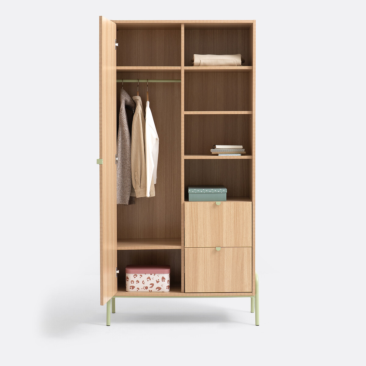 • 1 дверца слева: 2 полки, 1 подвесная перекладина