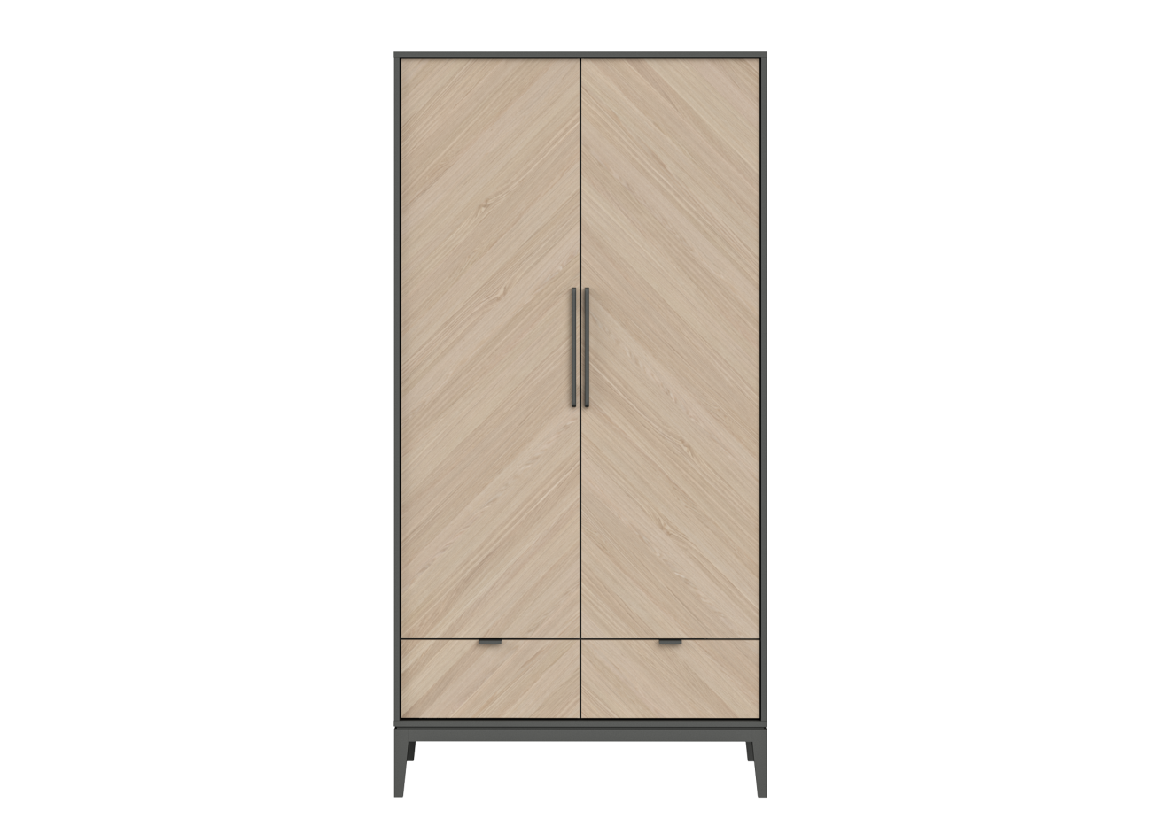 Шкаф Fjord имеет два отделения с полками и штангой, вместительный ящик на бесшумных направляющих с доводчиками.