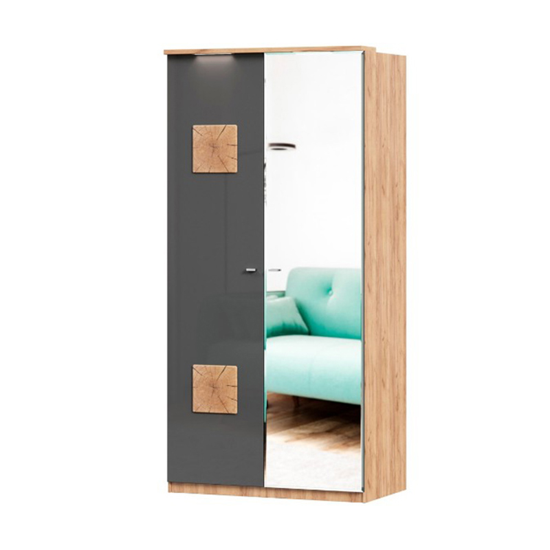 Шкаф двухстворчатый с зеркалом и декоративными накладками Фиджи (Дуб Золотой/Антрацит)