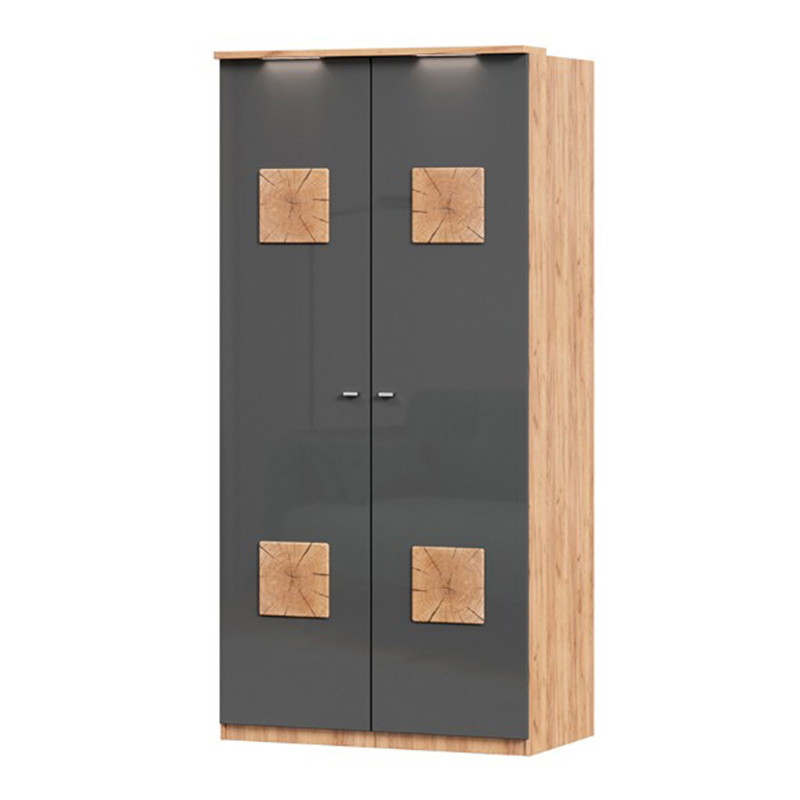 Шкаф двухстворчатый с декоративными накладками Фиджи (Дуб Золотой/Антрацит)