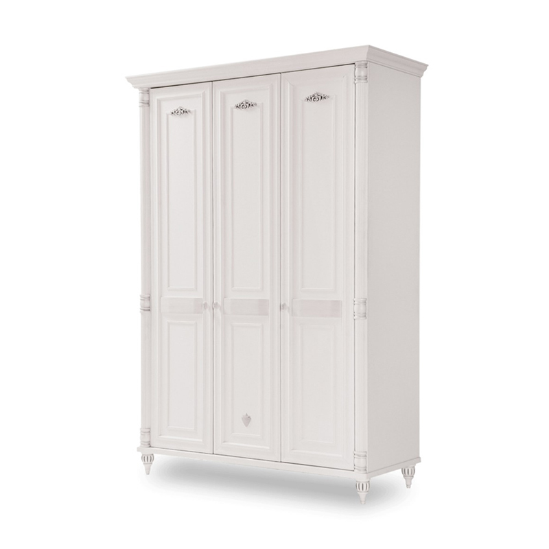 Запросить индивидуальное предложениеПри виде трёхдверного шкафа Romantic в глаза бросается эстетичность, красота и лёгкость, с какой была изготовлена данная модель шкафа. Необходимое количество отделений, выгодно расположенных по всему шкафу, позволит вашей принцессе разместить одежду, обувь и другие вещи. Установленные доводчики способствуют плавному закрытию дверцы шкафчика, за счёт чего полностью исключаются резкие щелчки и стук, что обеспечит тишину в пользовании. Шкаф очень вместительный и функциональный, имеет прочное крепление и фурнитуру, благодаря чему шкаф прослужит Вам долгие годы!