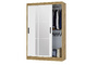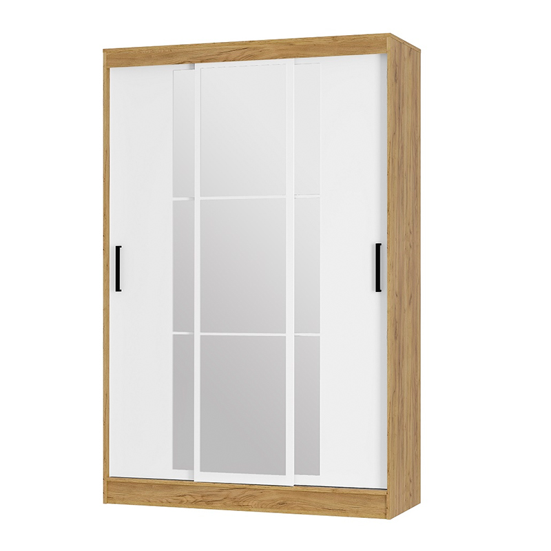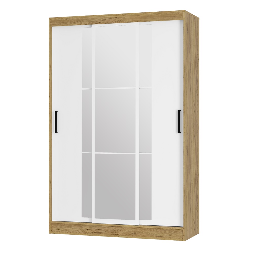 Раздвижные створки снабжены удобными ручками, центральная створка полностью декорирована зеркалом с еврокромкой, которое создаёт иллюзию расширенного пространства.