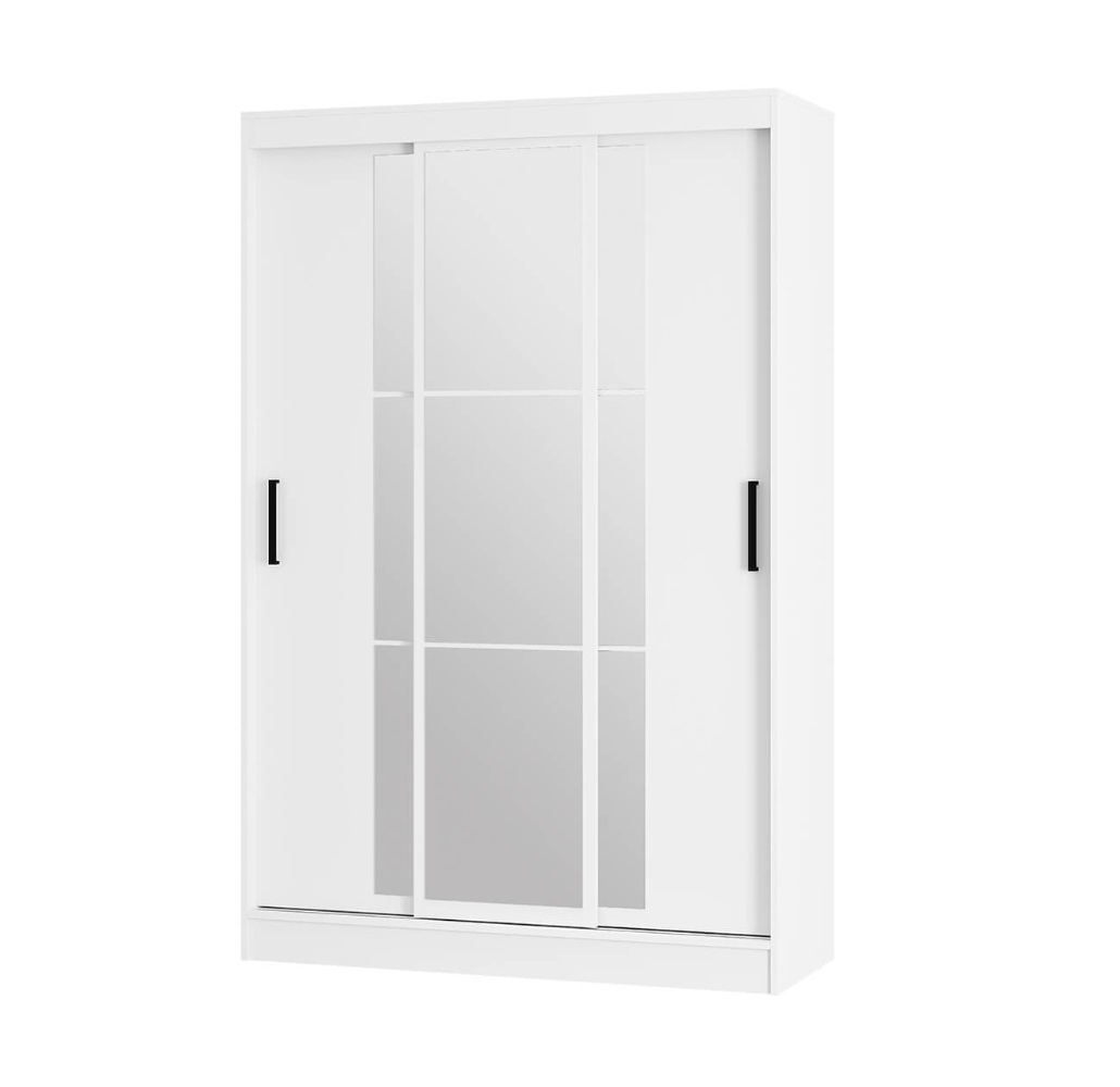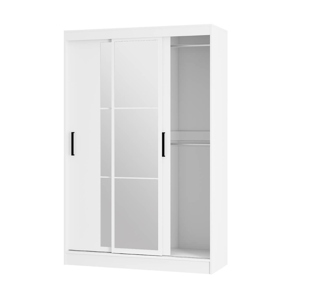 Раздвижные створки снабжены удобными ручками, центральная створка полностью декорирована зеркалом с еврокромкой, которое создаёт иллюзию расширенного пространства.