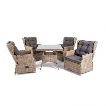 "Форио" кресло раскладное плетеное, цвет соломенный 4шт. 730Х830Х1 015, "Айриш" стол плетеный из искусственного ротанга, цвет соломенный 1шт. 900Х900Х750,