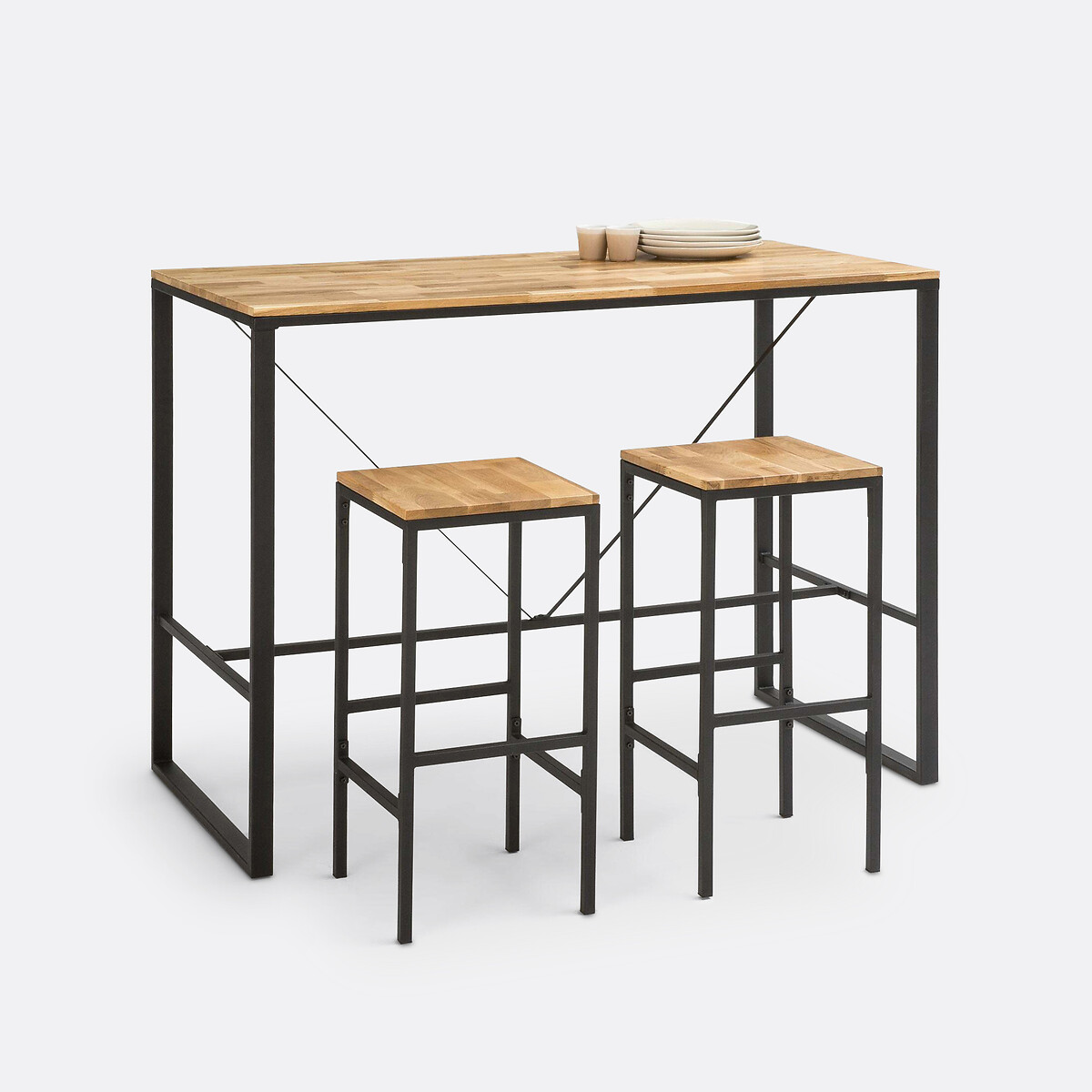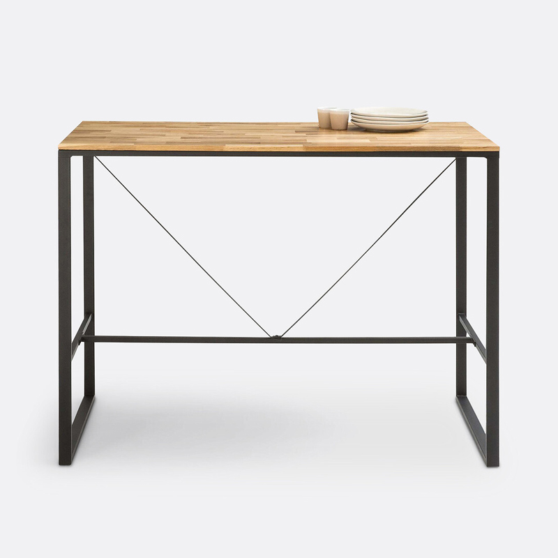 Столик барный высокий на 4-6 персон из дуба и стали Hiba 6 персоны бежевый