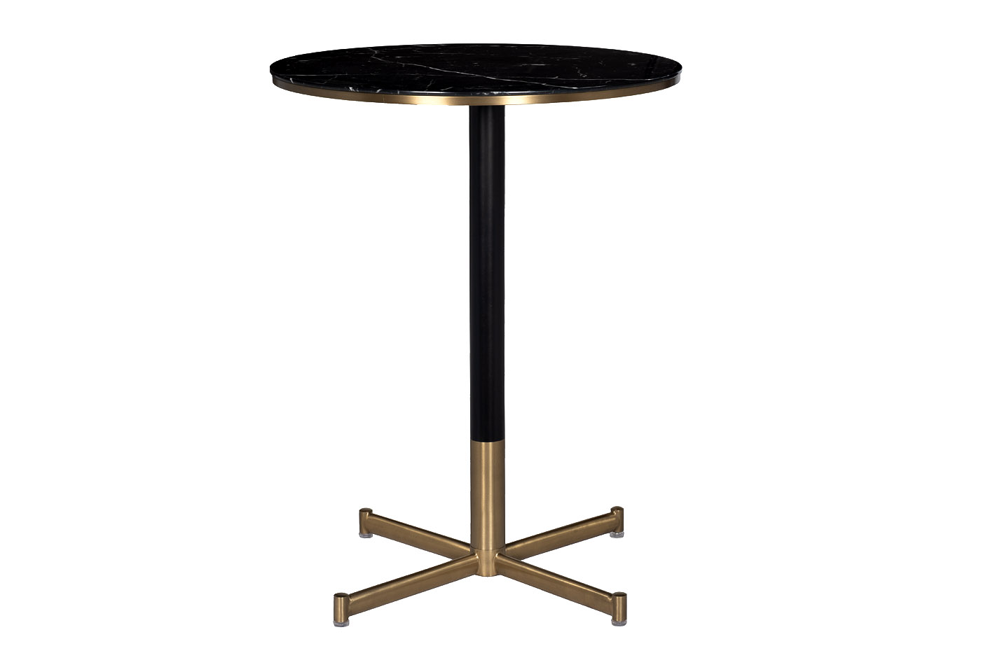 Стол высокий мраморное стекло/черный металл с матовым золотом d.70*90