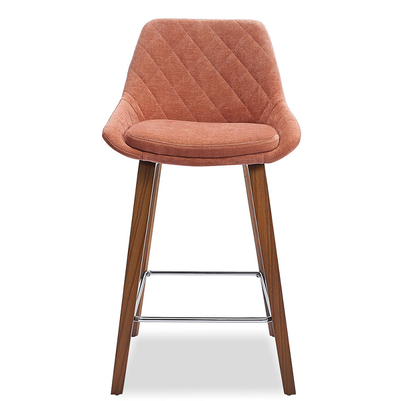 Яркая обивка из ткани сочетается с ореховыми ножками.