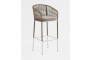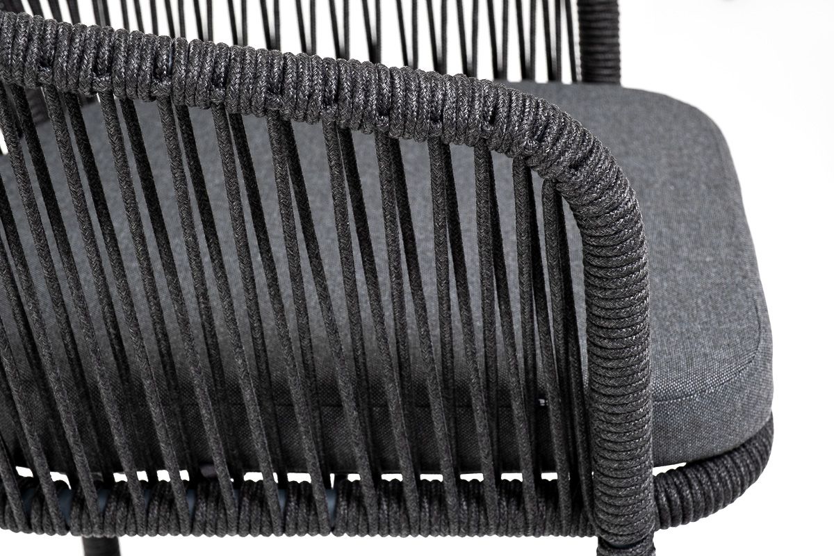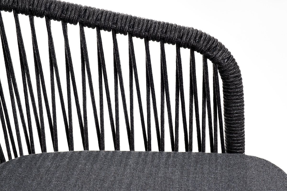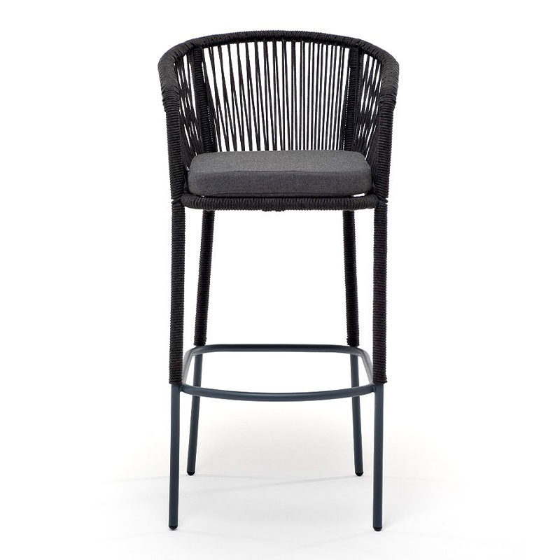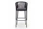 "Марсель" стул барный плетеный из роупа, каркас из стали серый (RAL7022) муар, роуп темно-серый круглый, ткань темно-серая 027
