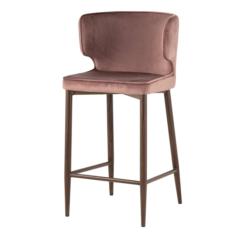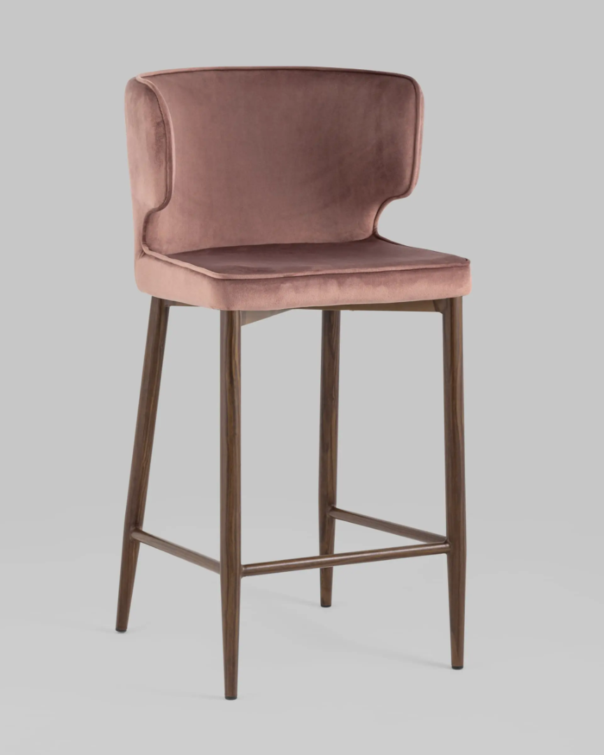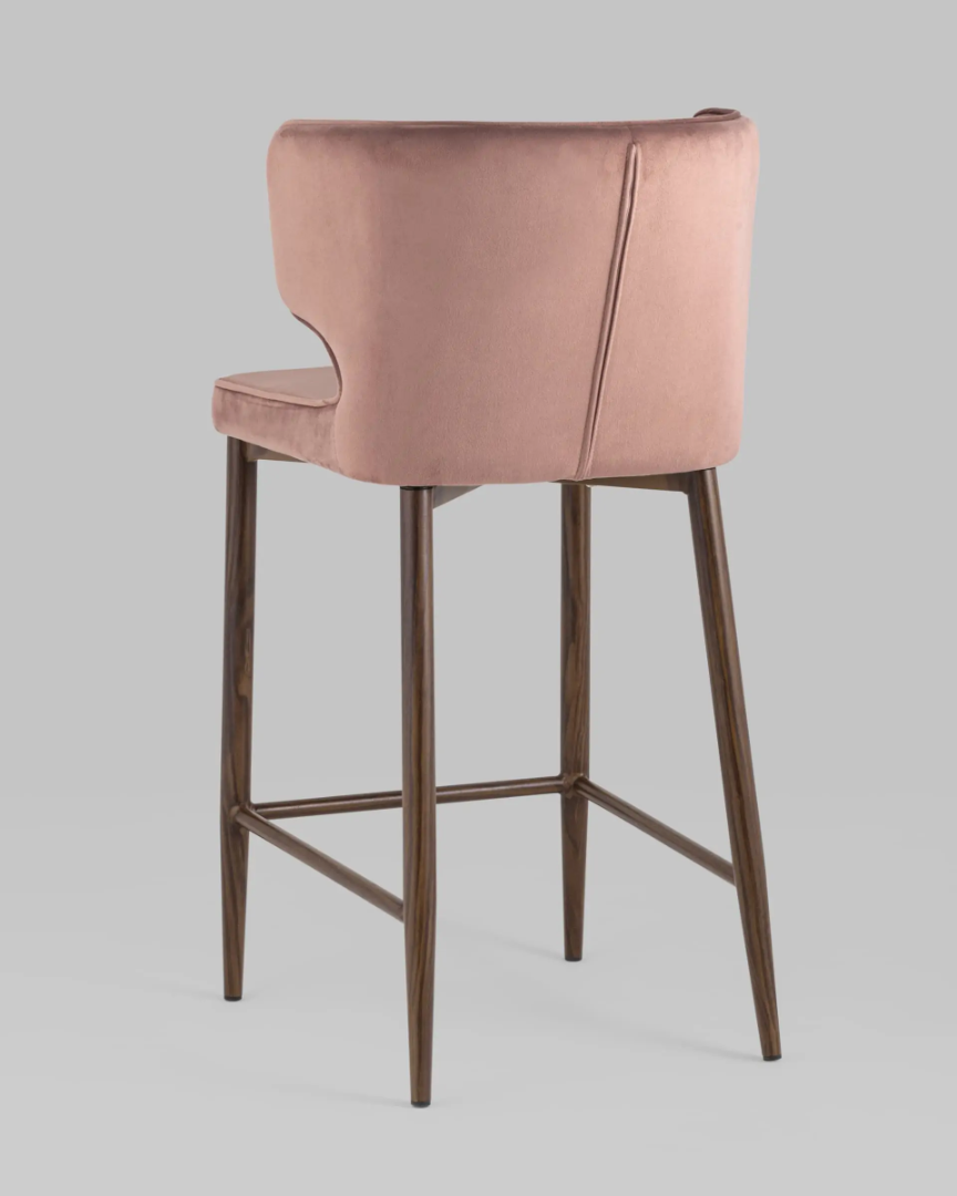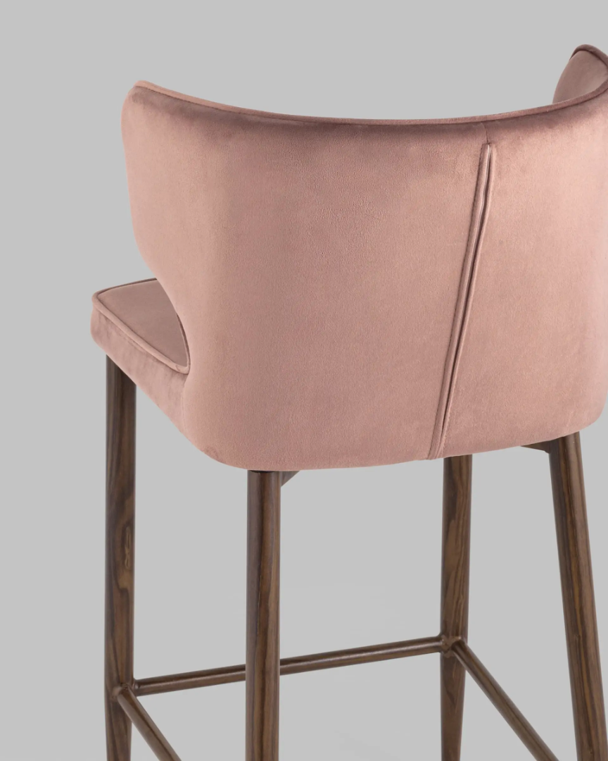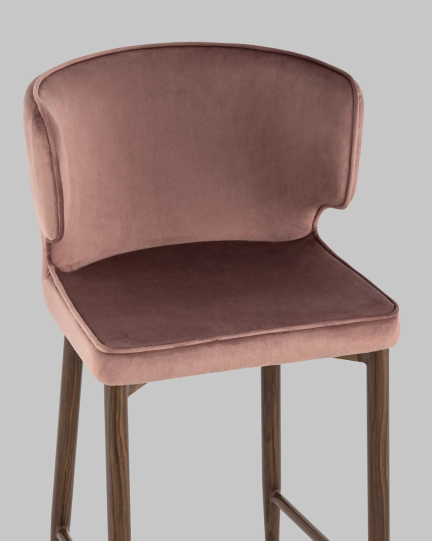 Стул полубарный Матео велюр пыльно-розовый ножки дерево