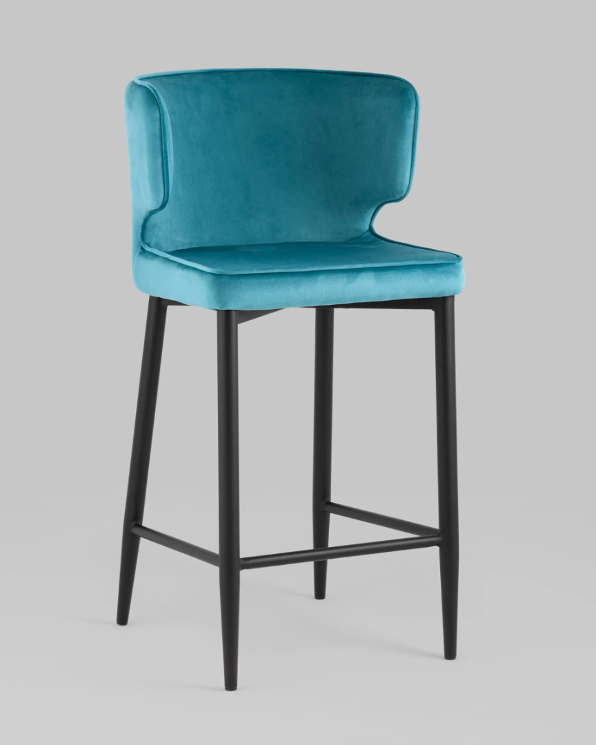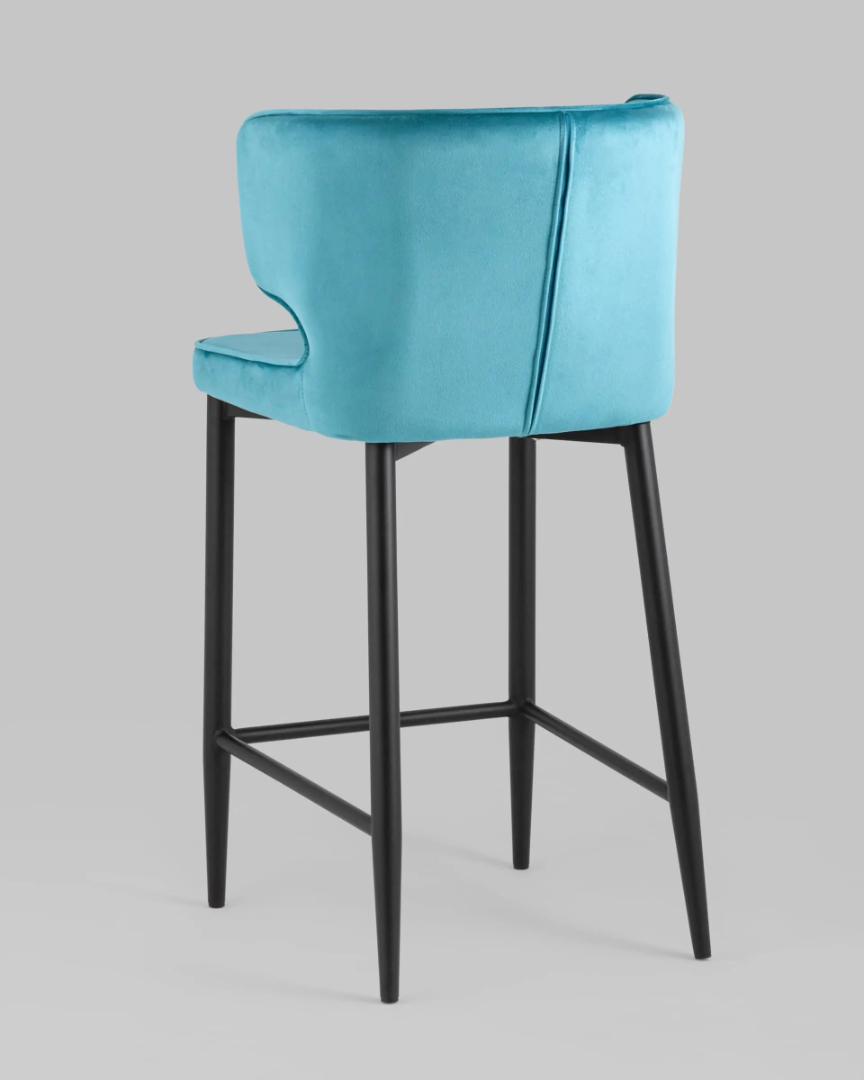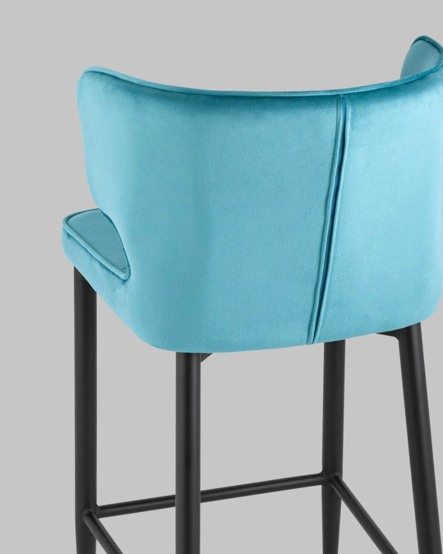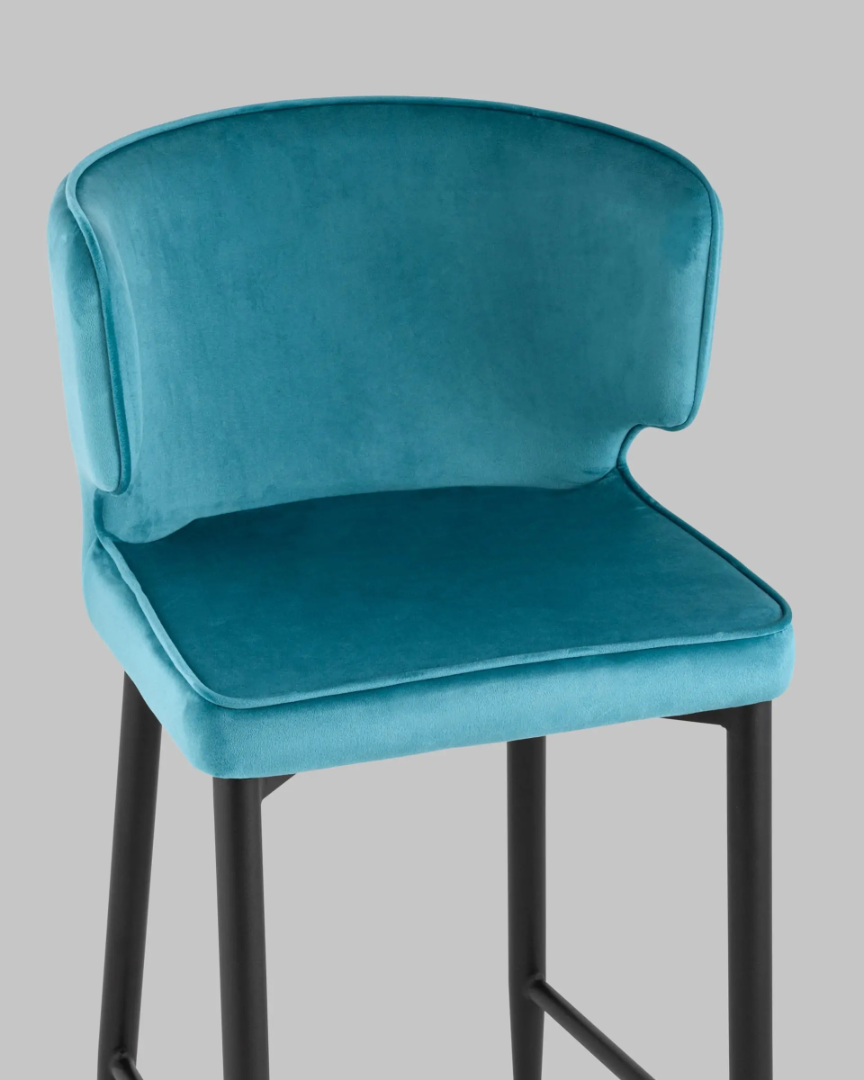 Мягкая обивка выполнена из велюра - прочного износостойкого материала. Прямые металлические ножки в черном цвете имеют нестандартную форму в виде перевернутого конуса, поэтому обеспечивают хорошую устойчивость и делают стул оригинальным. Удобная подножка позволяет расположиться максимально комфортно.